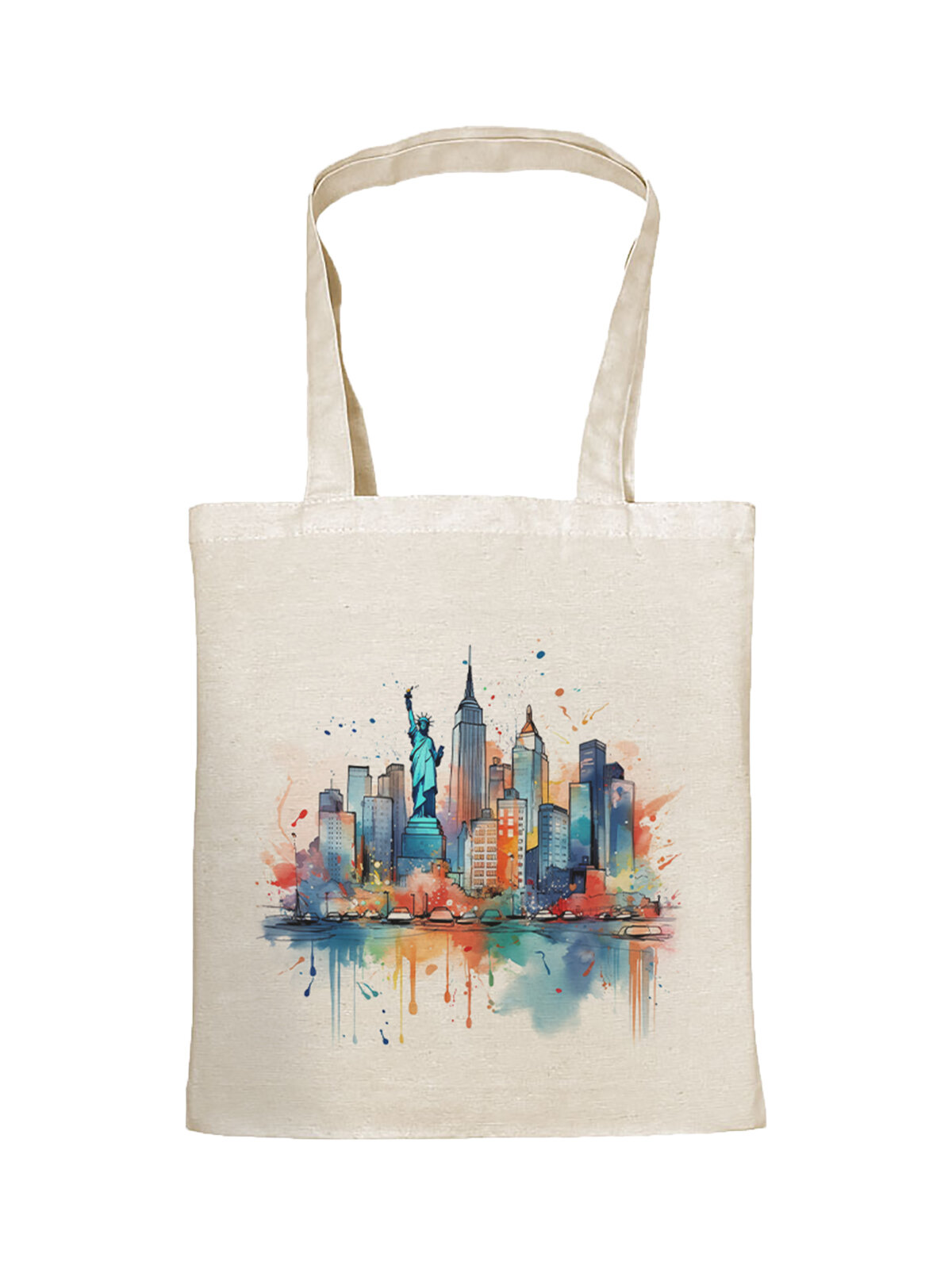 Сумка шоппер Gerasim шоппер с принтом "Улочка НьюЙорка", шопер авоська холщовая с рисунком в подарок, Silver