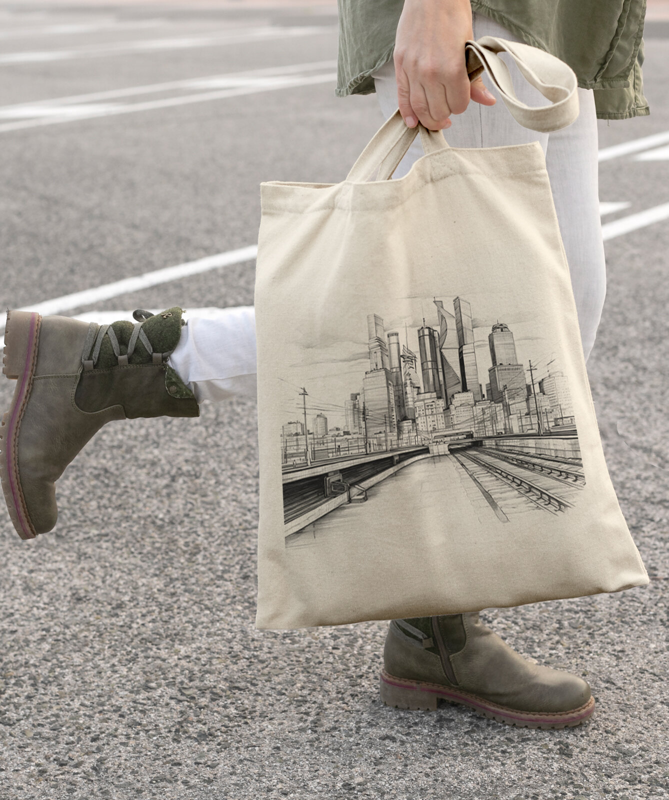 Сумка шоппер Gerasim шоппер с принтом "Москва Сити", шопер авоська холщовая с рисунком в подарок, серый, белый, бежевый, черный