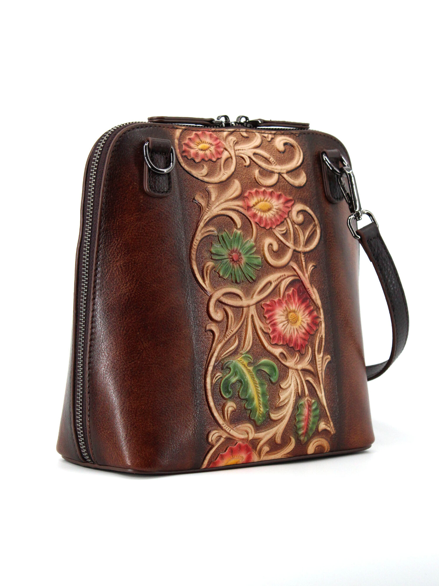 Сумка кросс-боди Dzett, фактура тиснение, коричневый, бордовый
