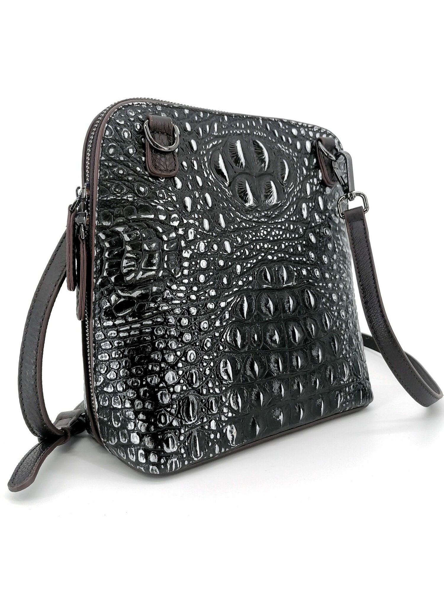 Купить Сумка кросс-боди Dzett, фактура тиснение, черный, серебряный