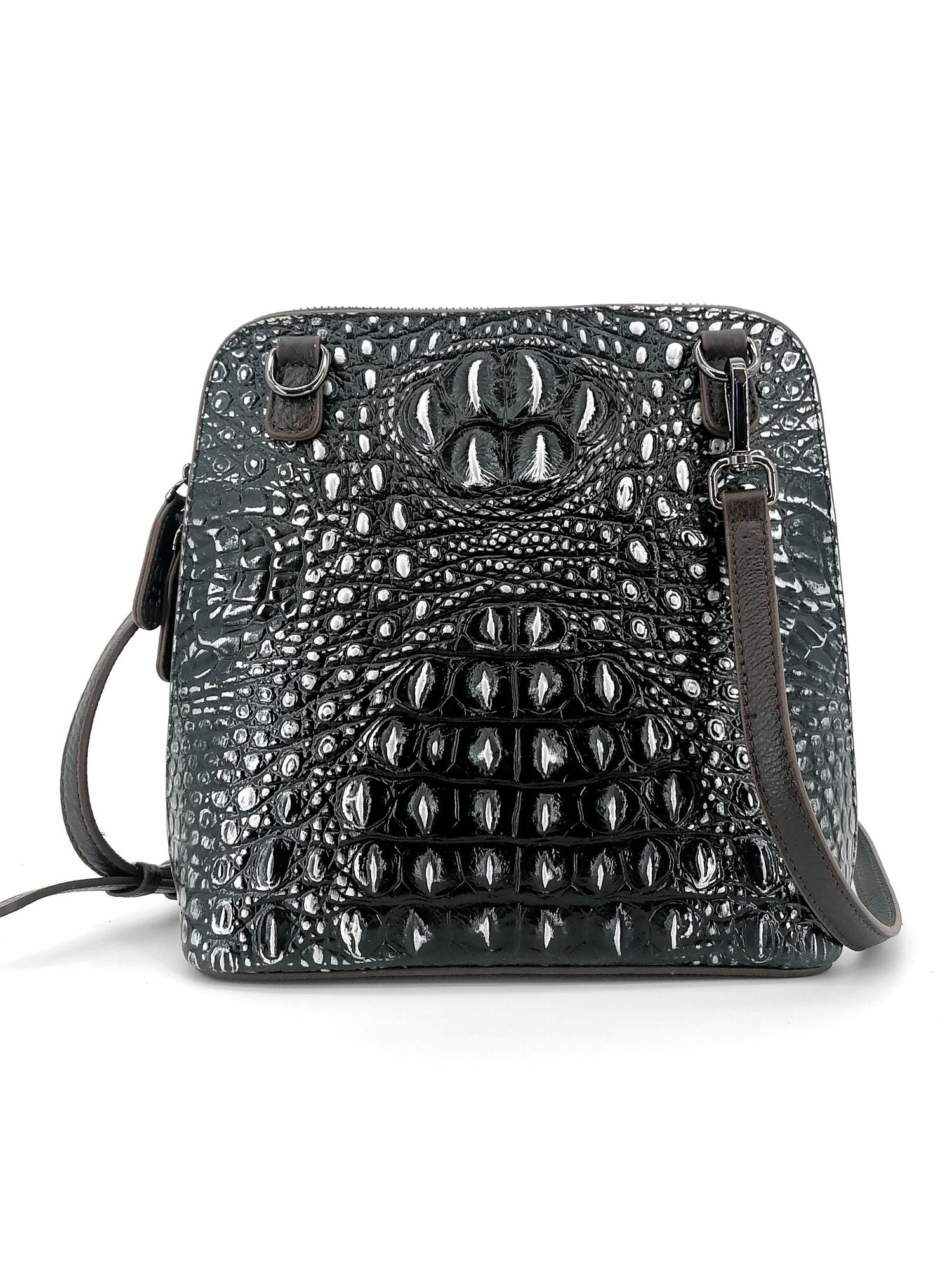 Сумка кросс-боди Dzett, фактура тиснение, серебряный, черный, серый