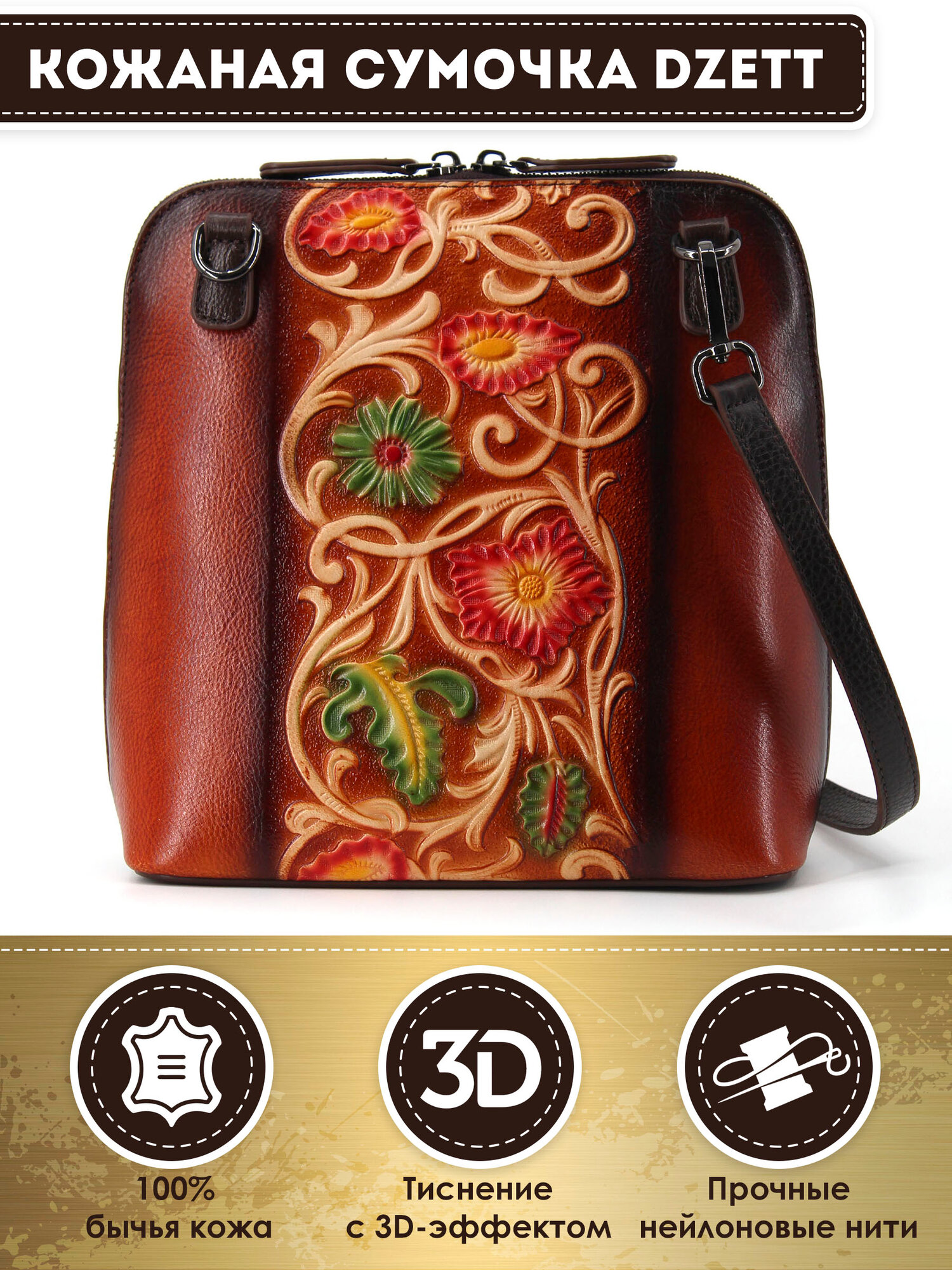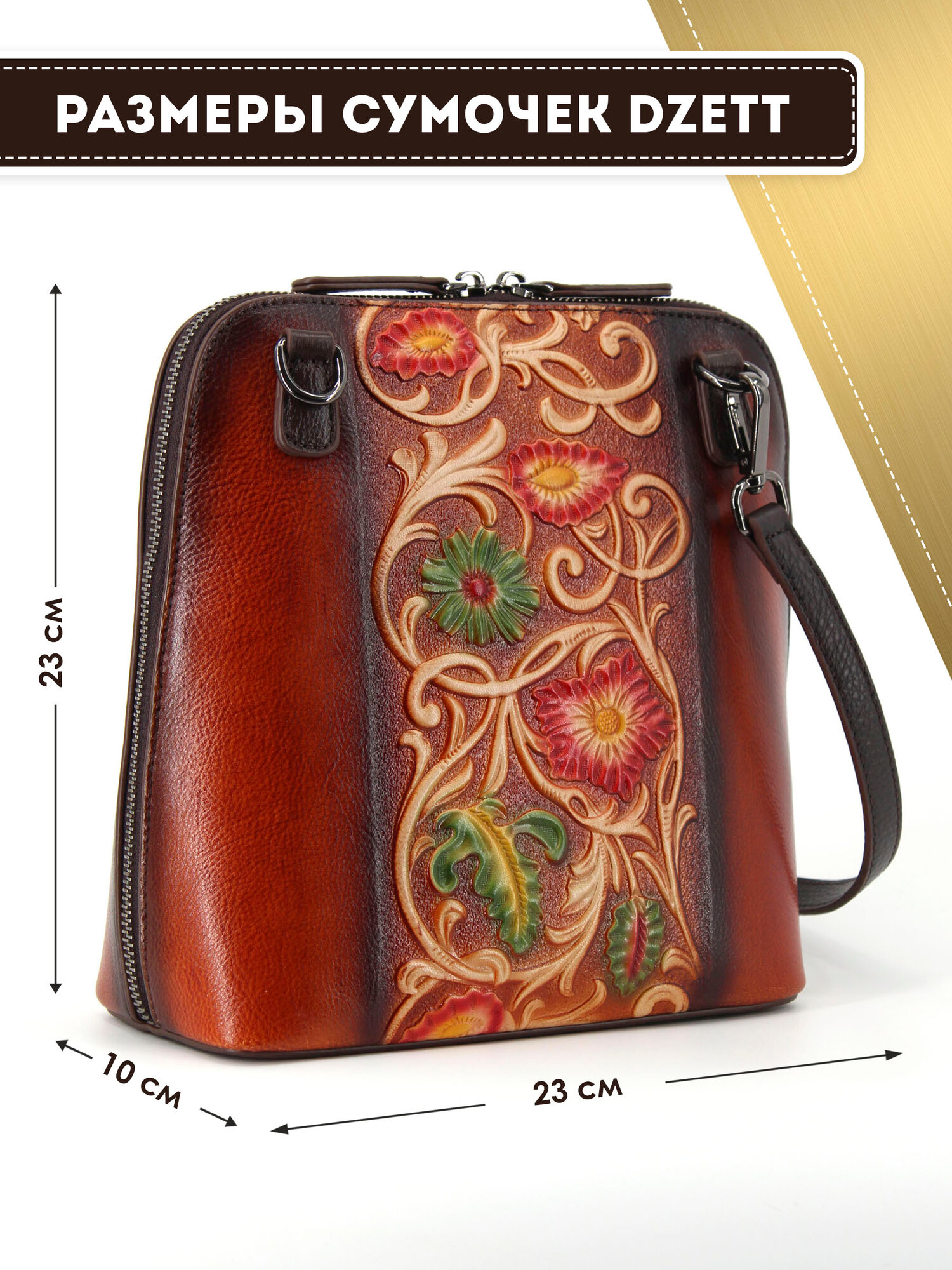 Сумка кросс-боди Dzett, фактура тиснение, коричневый, красный