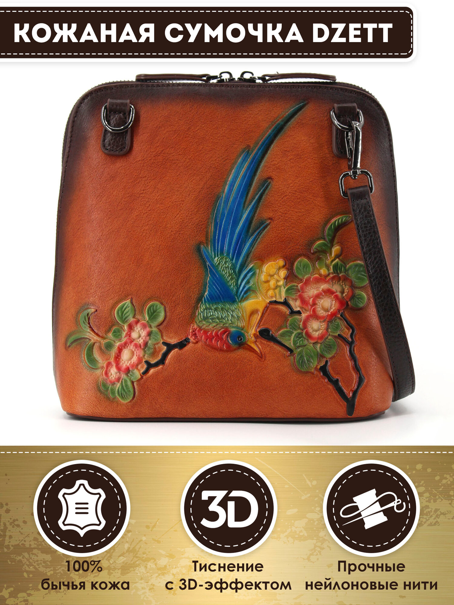 Сумка кросс-боди Dzett, фактура тиснение, коралловый, коричневый, зеленый