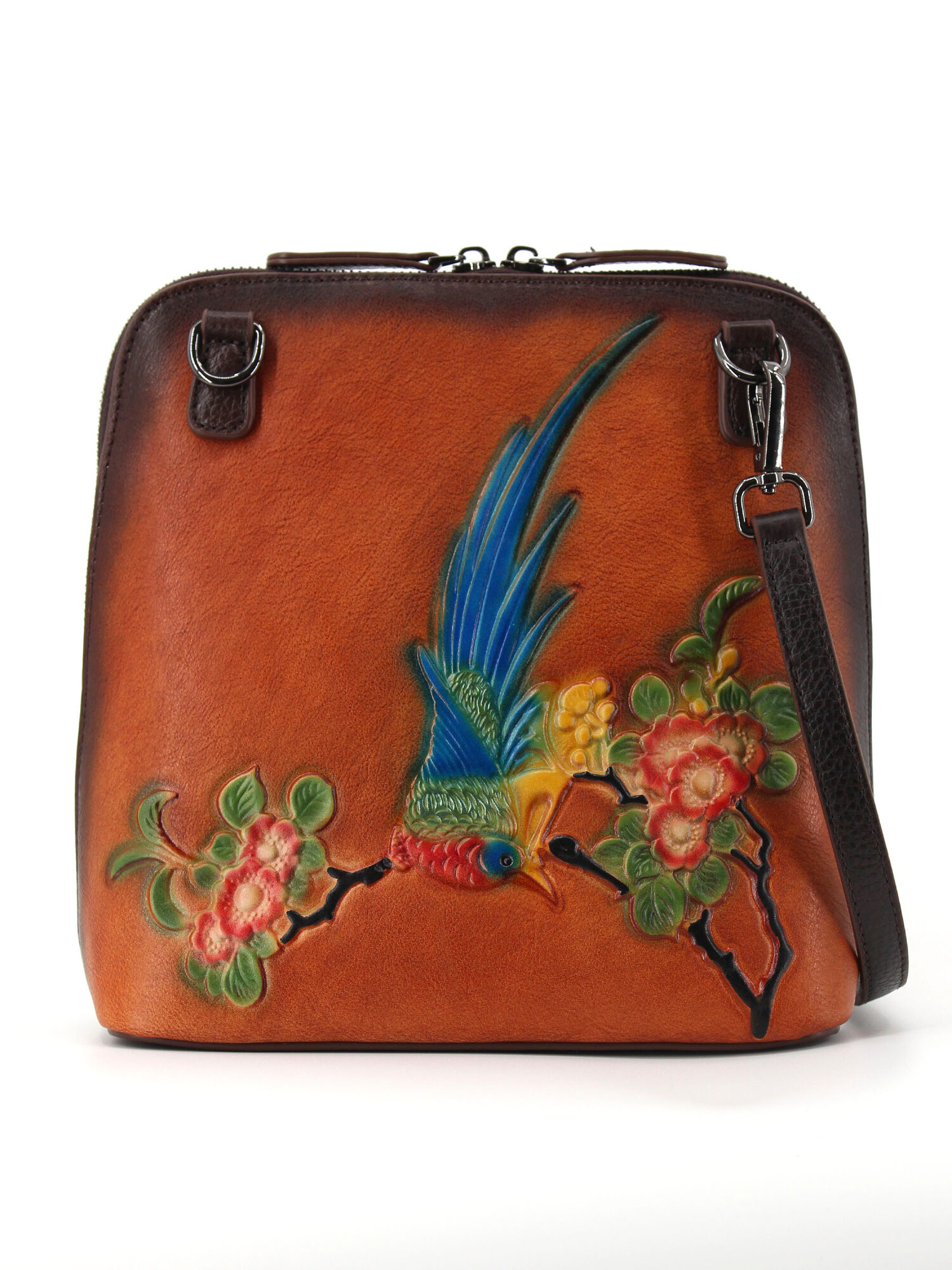 Сумка кросс-боди Dzett, фактура тиснение, коричневый, зеленый, красный, желтый
