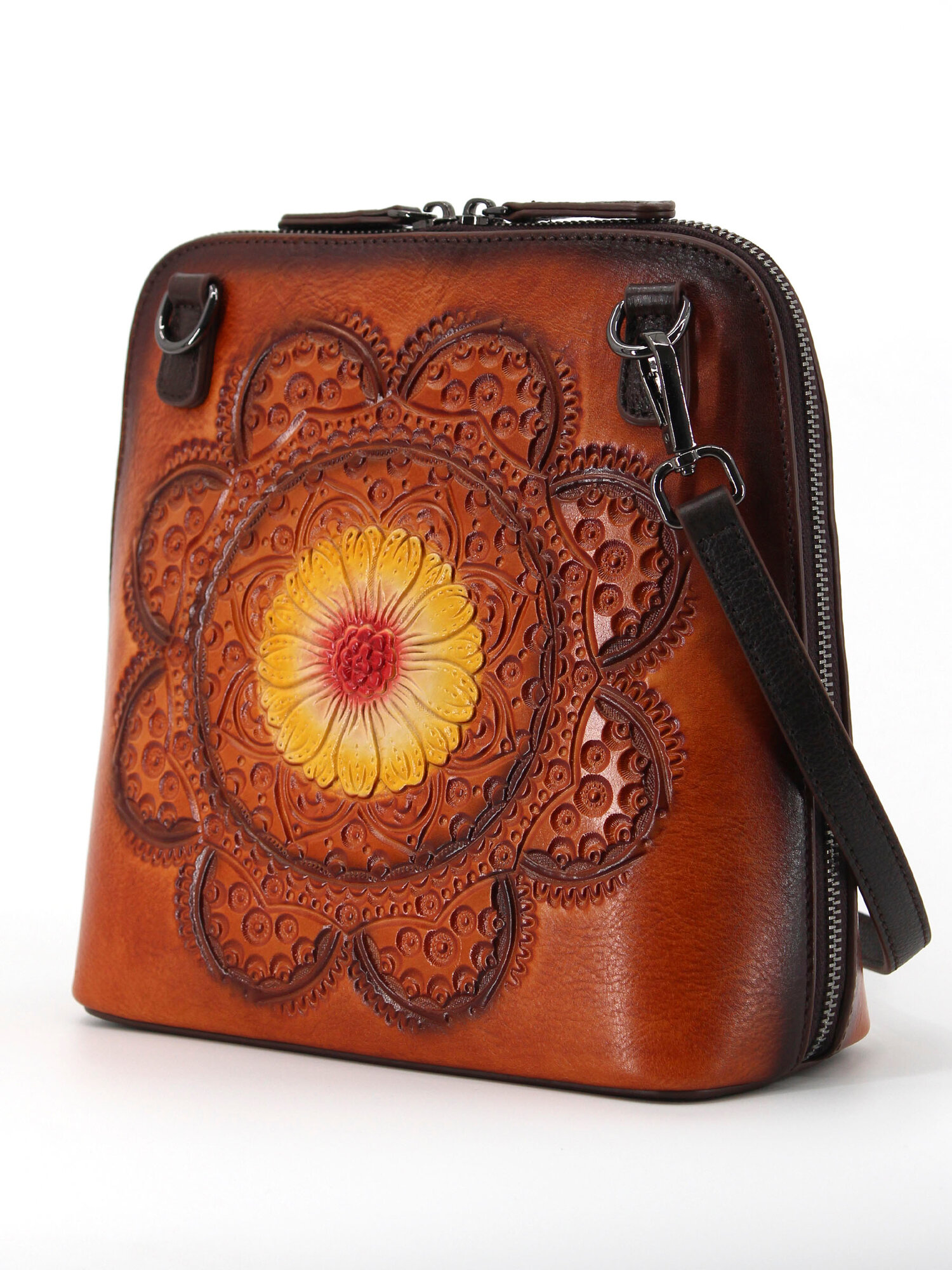 Сумка кросс-боди Dzett, фактура тиснение, коричневый, красный, желтый