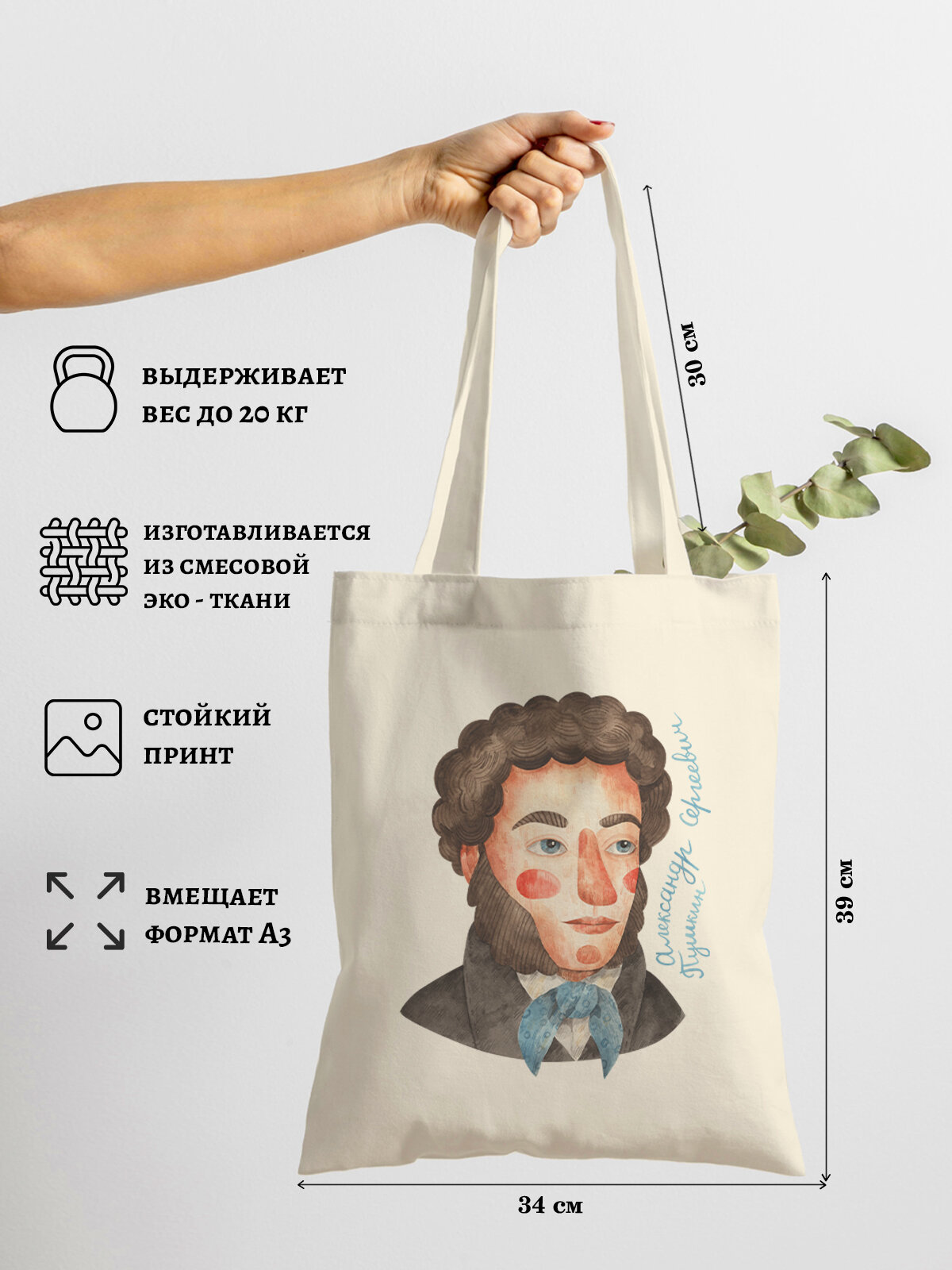 Купить Сумка шоппер Gerasim шоппер с принтом авоська холщовая с рисунком в подарок "Пушкин", коричневый