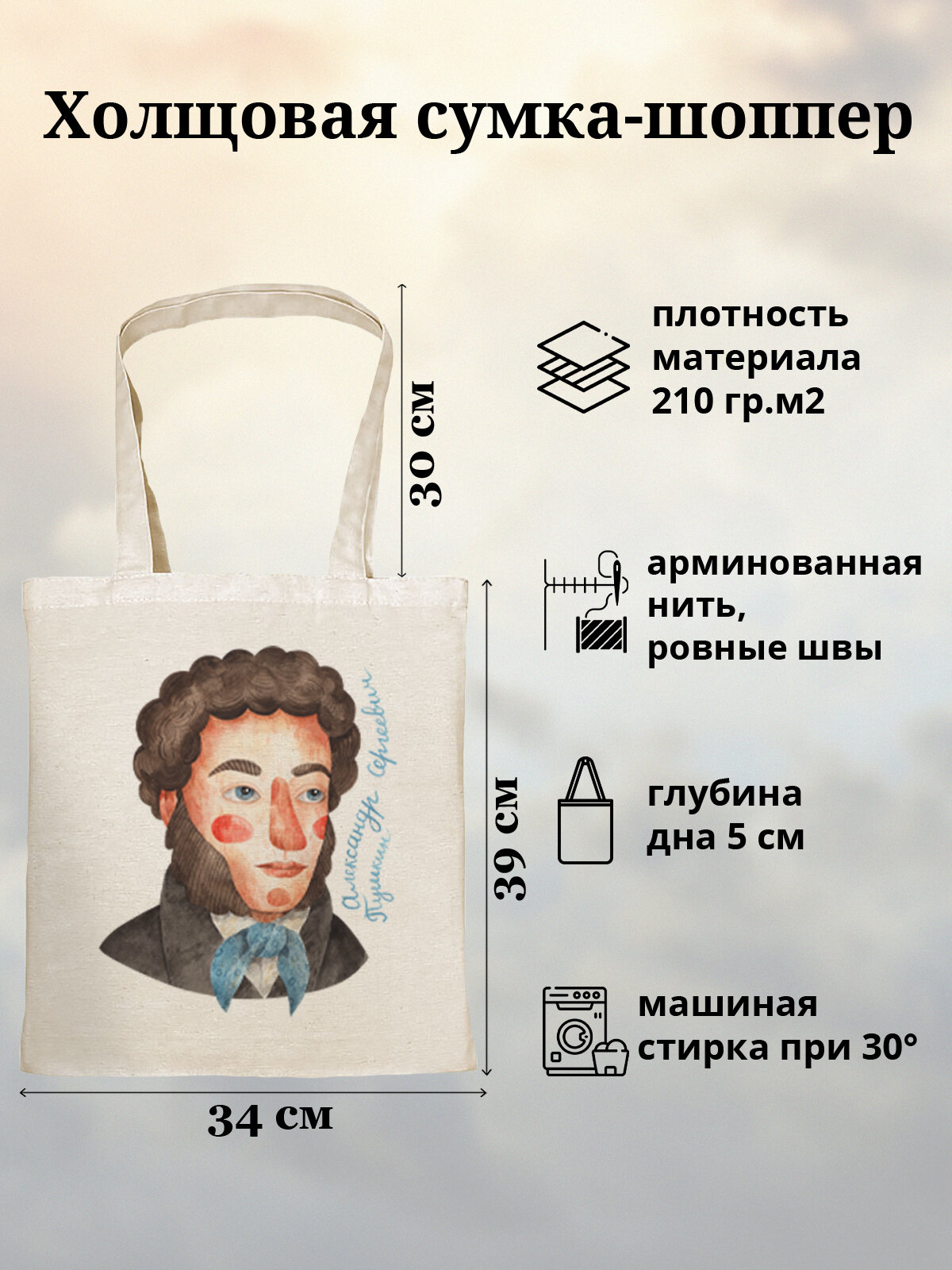 Сумка шоппер Gerasim шоппер с принтом авоська холщовая с рисунком в подарок "Пушкин", коричневый