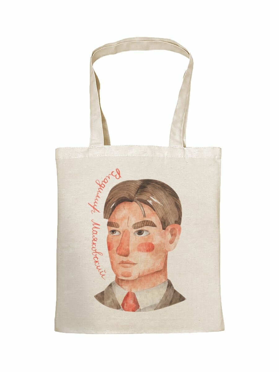 СохранитьСумка шоппер Gerasim шоппер с принтом авоська холщовая с рисунком в подарок "Маяковский", бежевый интересное:
