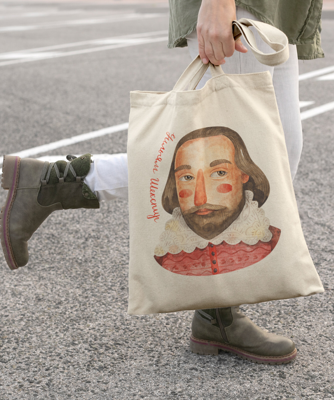 СохранитьСумка шоппер Gerasim шоппер с принтом авоська холщовая с рисунком в подарок "Шекспир", темно-синий/белый интересное: