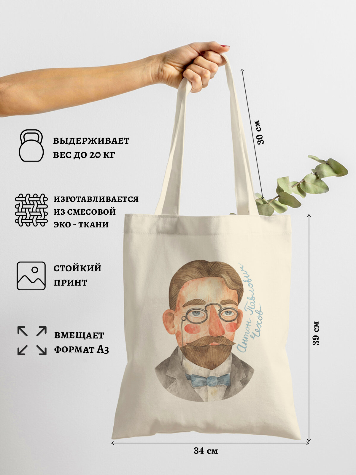 Купить Сумка шоппер Gerasim шоппер с принтом авоська холщовая с рисунком в подарок "Чехов", коричневый/зеленый