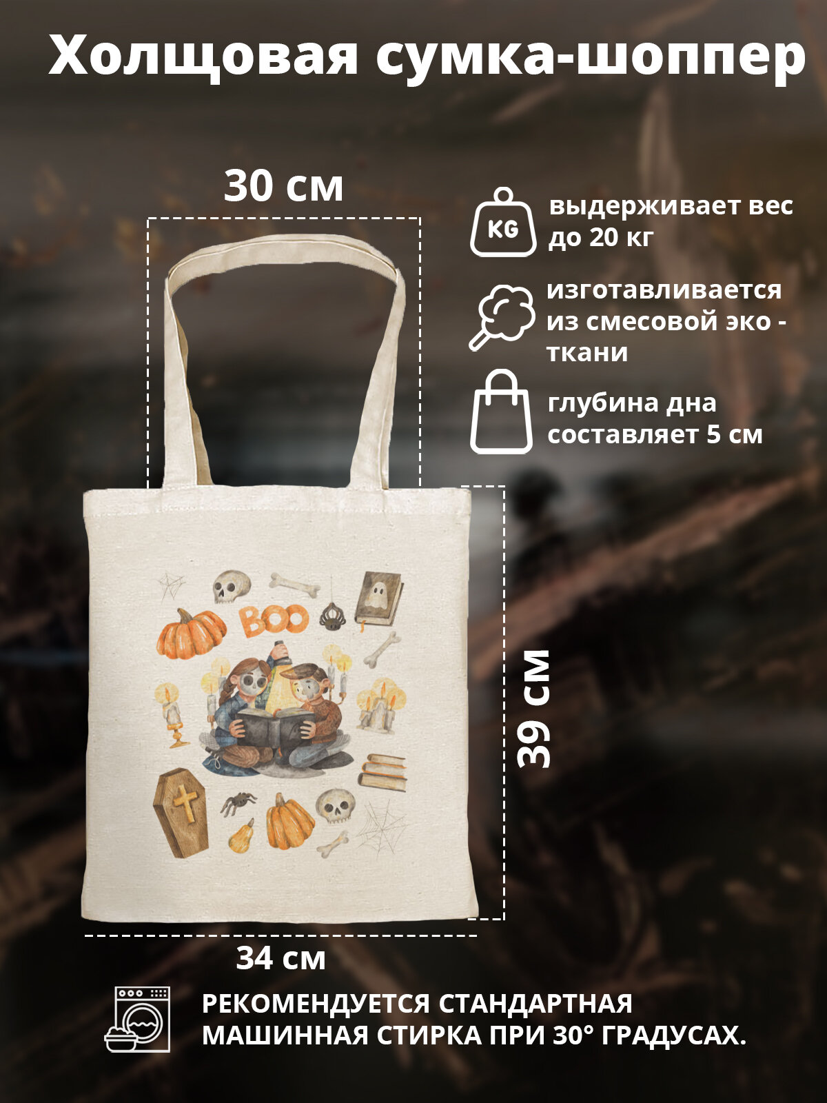 Купить Сумка шоппер Gerasim шоппер с принтом "Страшилки на ночь", шопер авоська холщовая с рисунком в подарок, beige
