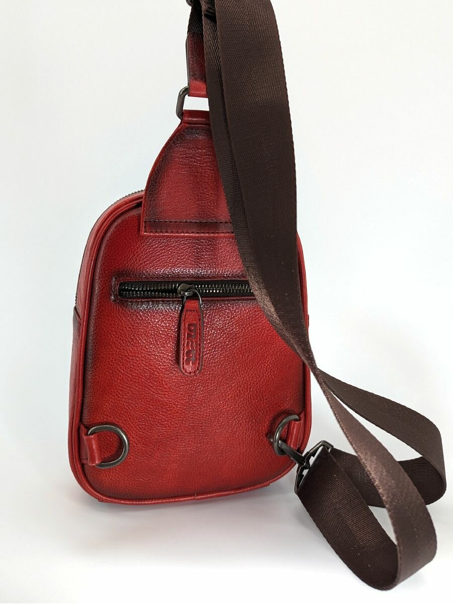 Сумка слинг Dzett, фактура тиснение, коричневый, красный