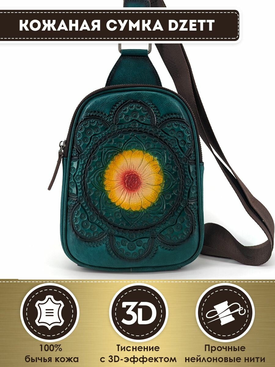 Сумка слинг Dzett, фактура тиснение, зеленый интересное: