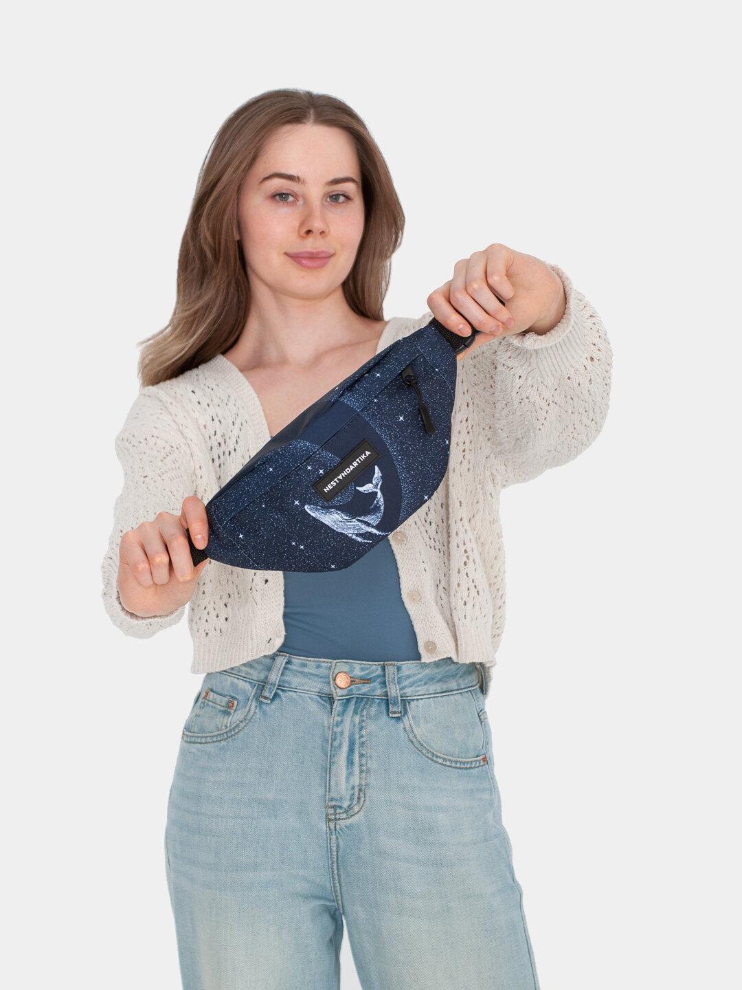 Сумка поясная НЕСТАНДАРТИКА, фактура гладкая, черный, белый, синий