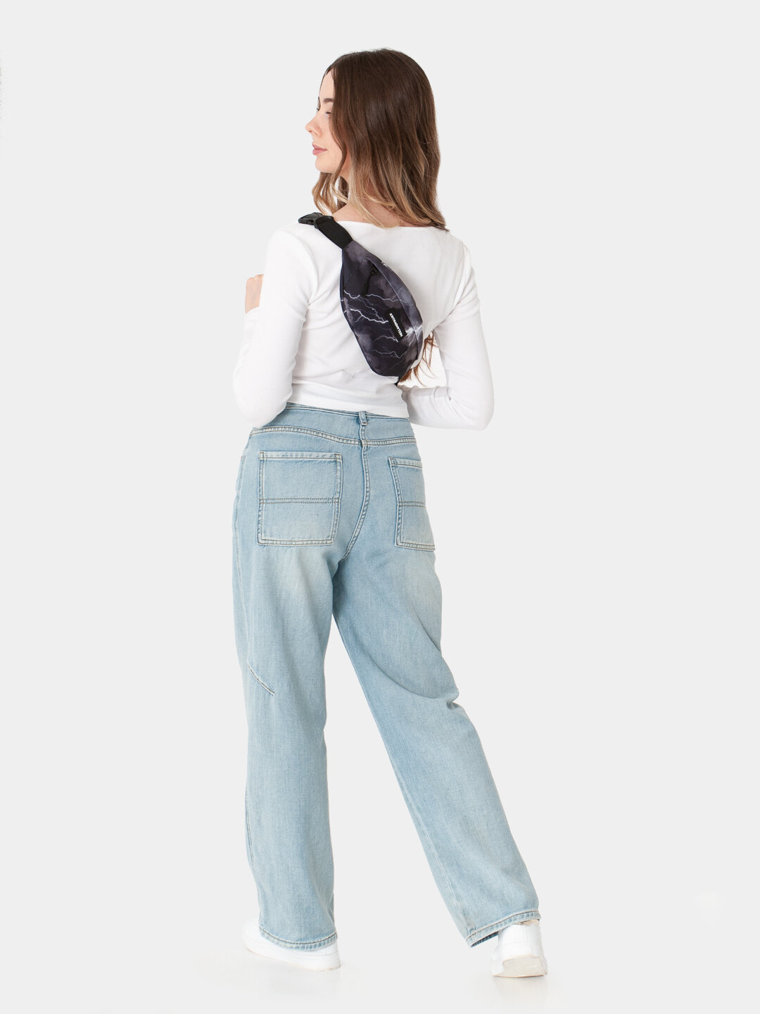 Сумка поясная НЕСТАНДАРТИКА, фактура гладкая, черный, белый, синий