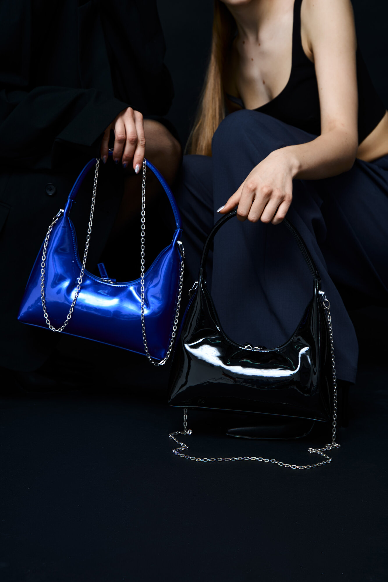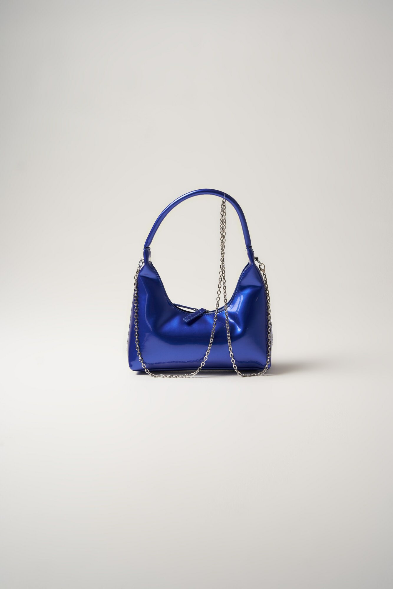 Сумка хобо Vael Cosmic cobalt, фактура гладкая, лаковая, синий интересное: