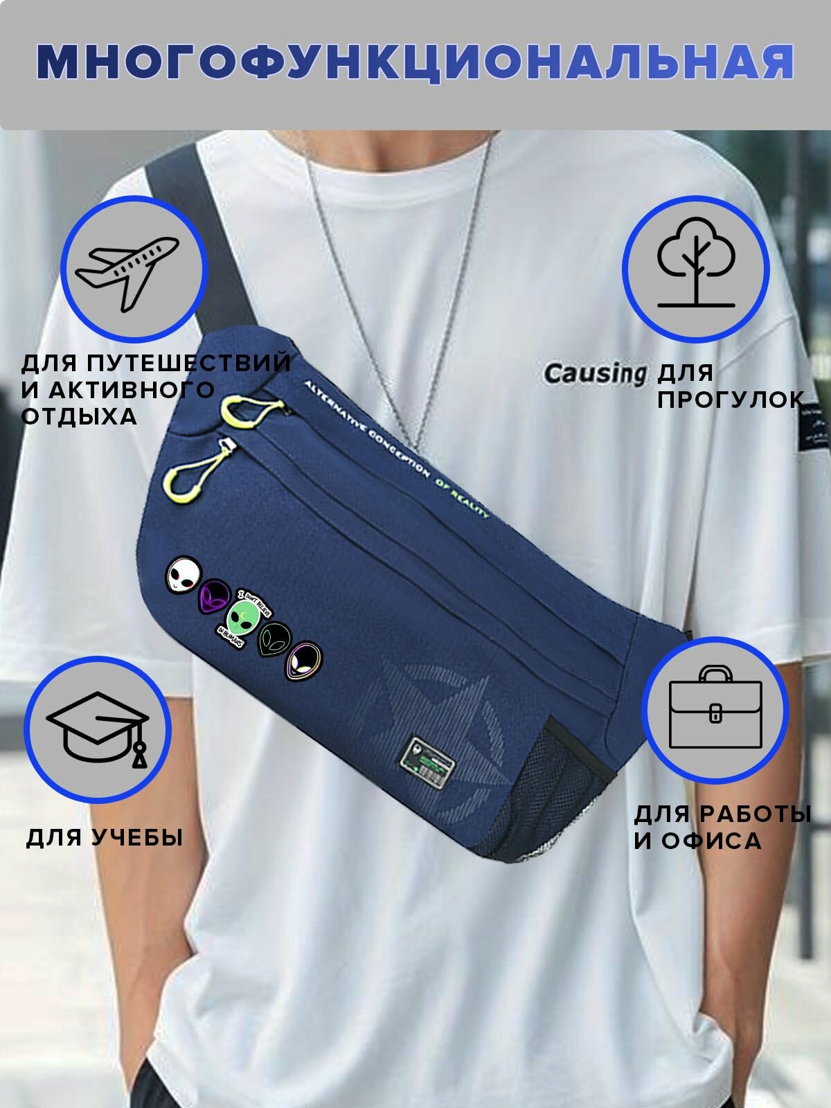 Сумка поясная Ufo People, синий интересное: