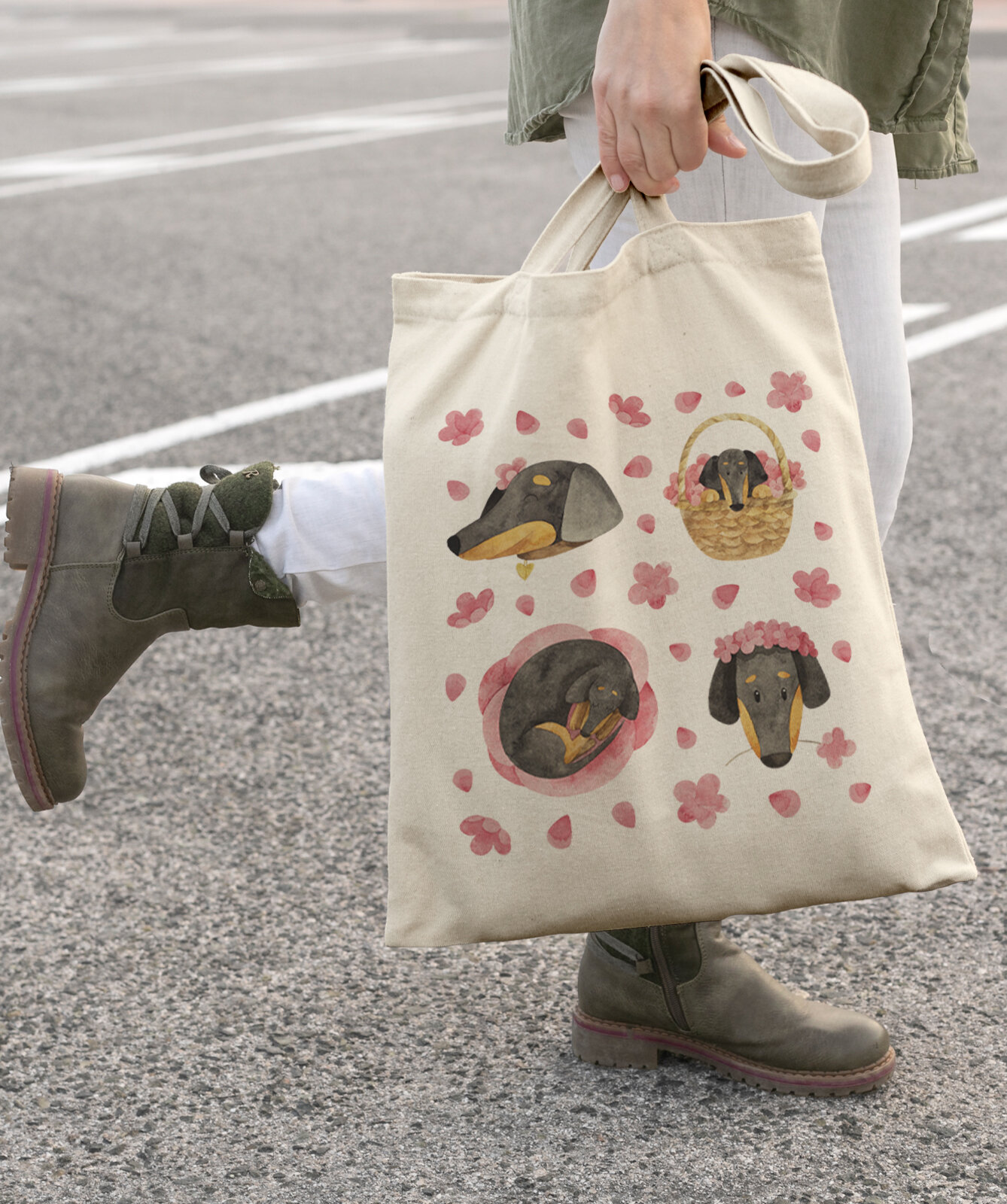 Купить Сумка шоппер Gerasim шоппер с принтом "Такса", шопер авоська холщовая с рисунком в подарок, черный
