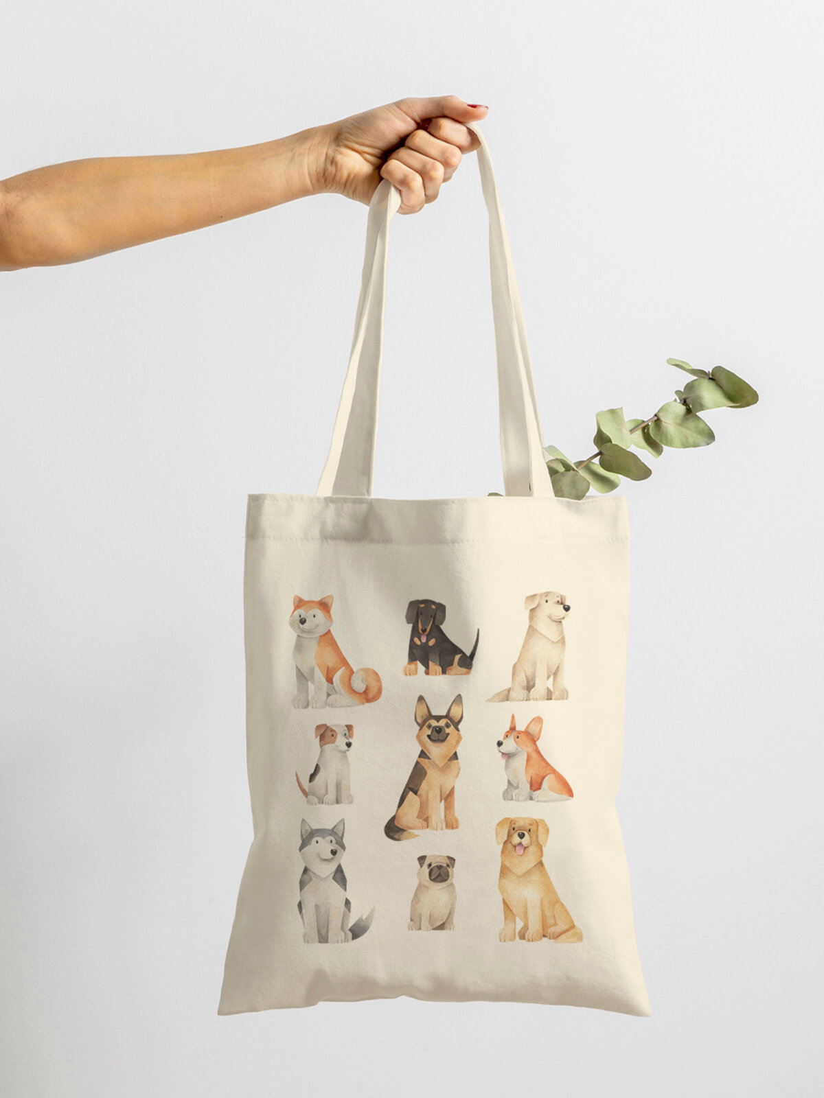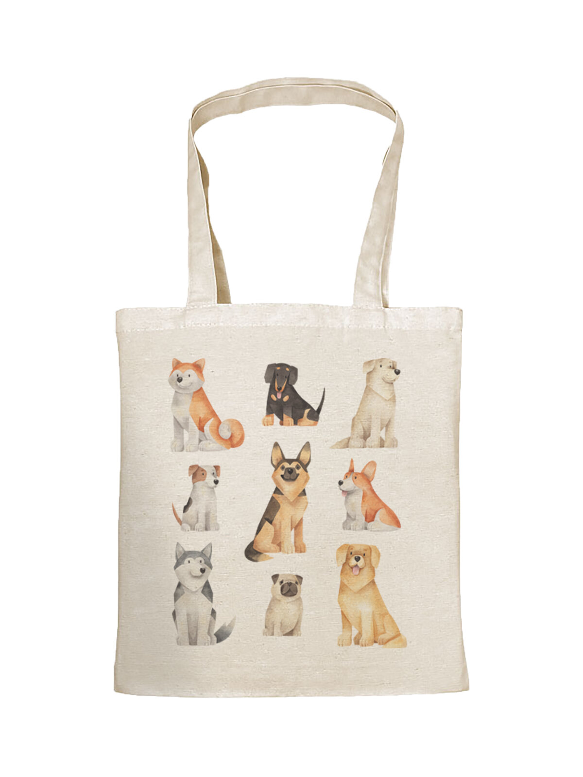 Сумка шоппер Gerasim шоппер с принтом "Собаки", шопер авоська холщовая с рисунком в подарок, молочный