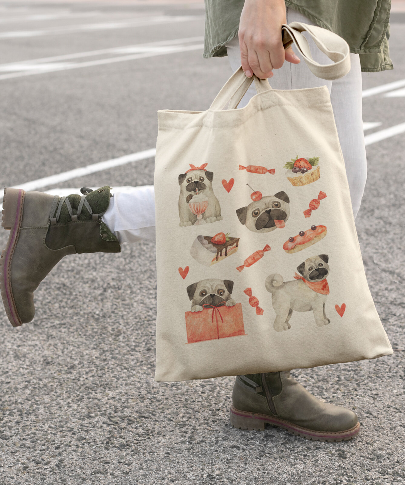 Купить Сумка шоппер Gerasim шоппер с принтом "Мопс", шопер авоська холщовая с рисунком в подарок, розовый