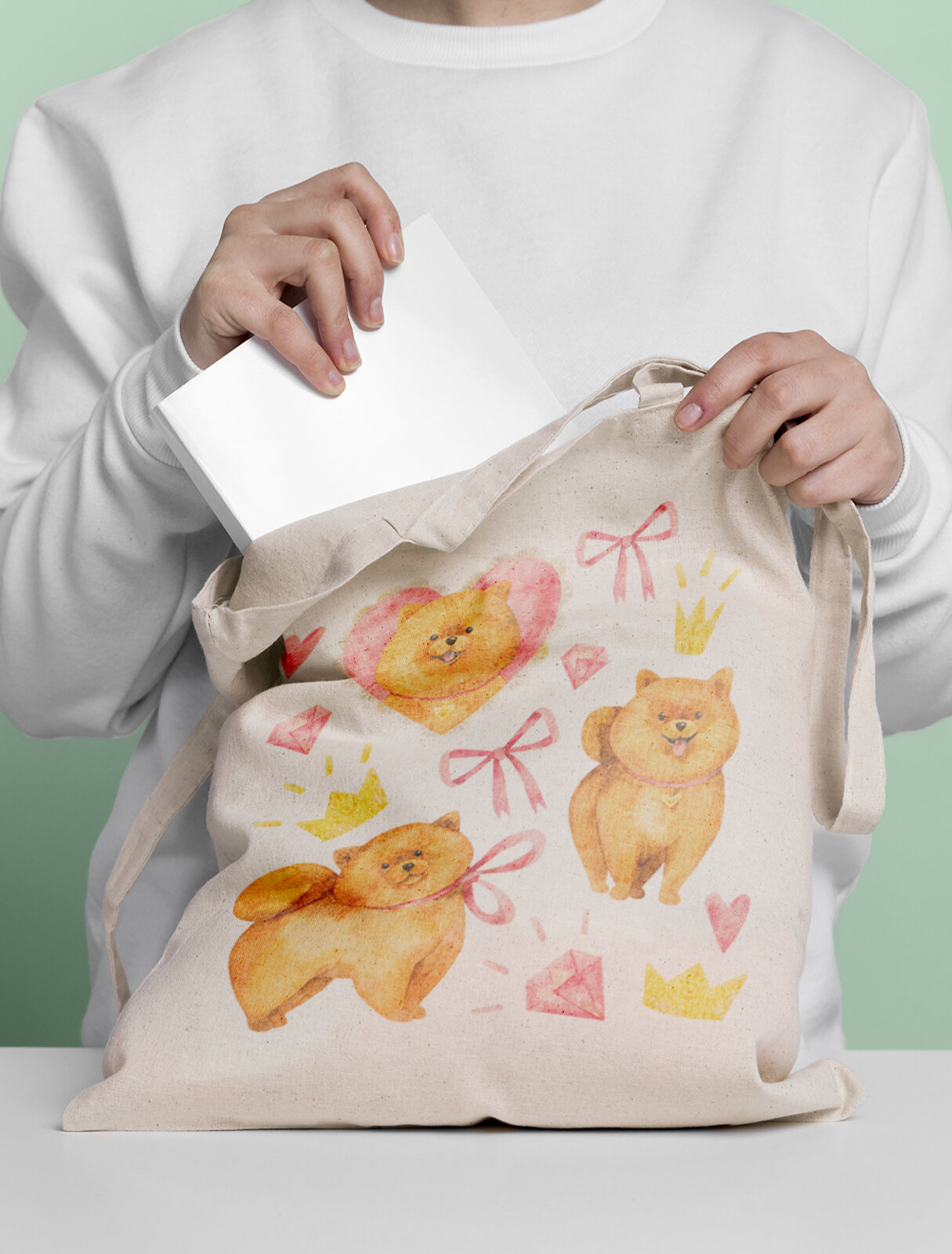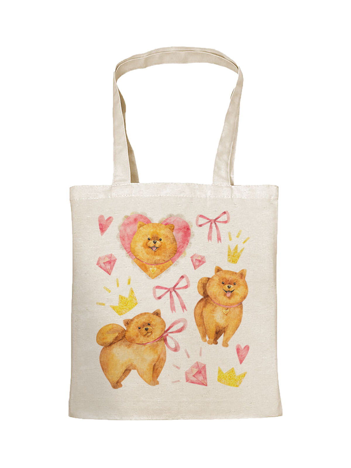 Купить Сумка шоппер Gerasim шоппер с принтом "Шпиц", шопер авоська холщовая с рисунком в подарок, песочный