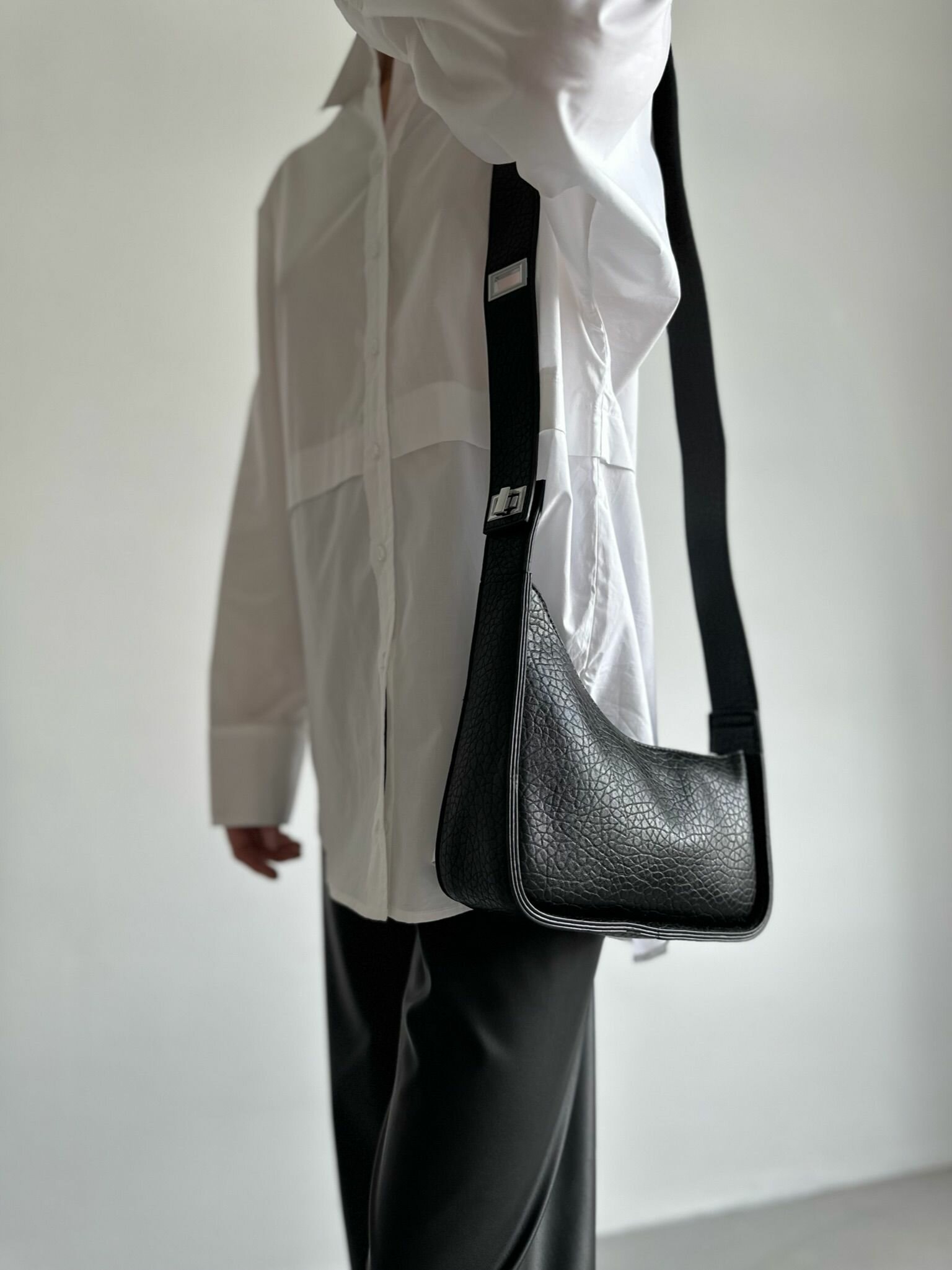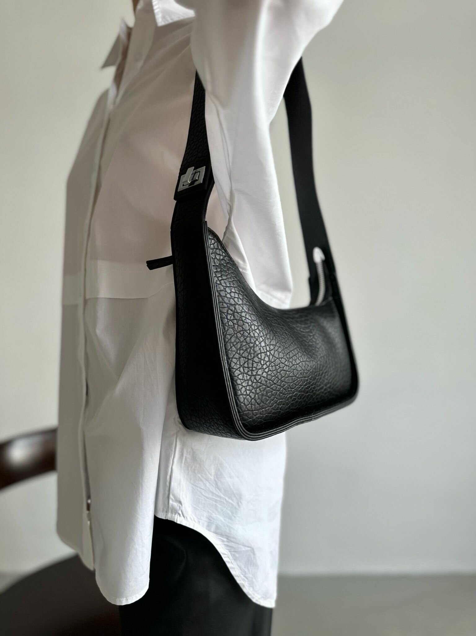 Сумка багет Vael, фактура зернистая, черный интересное: