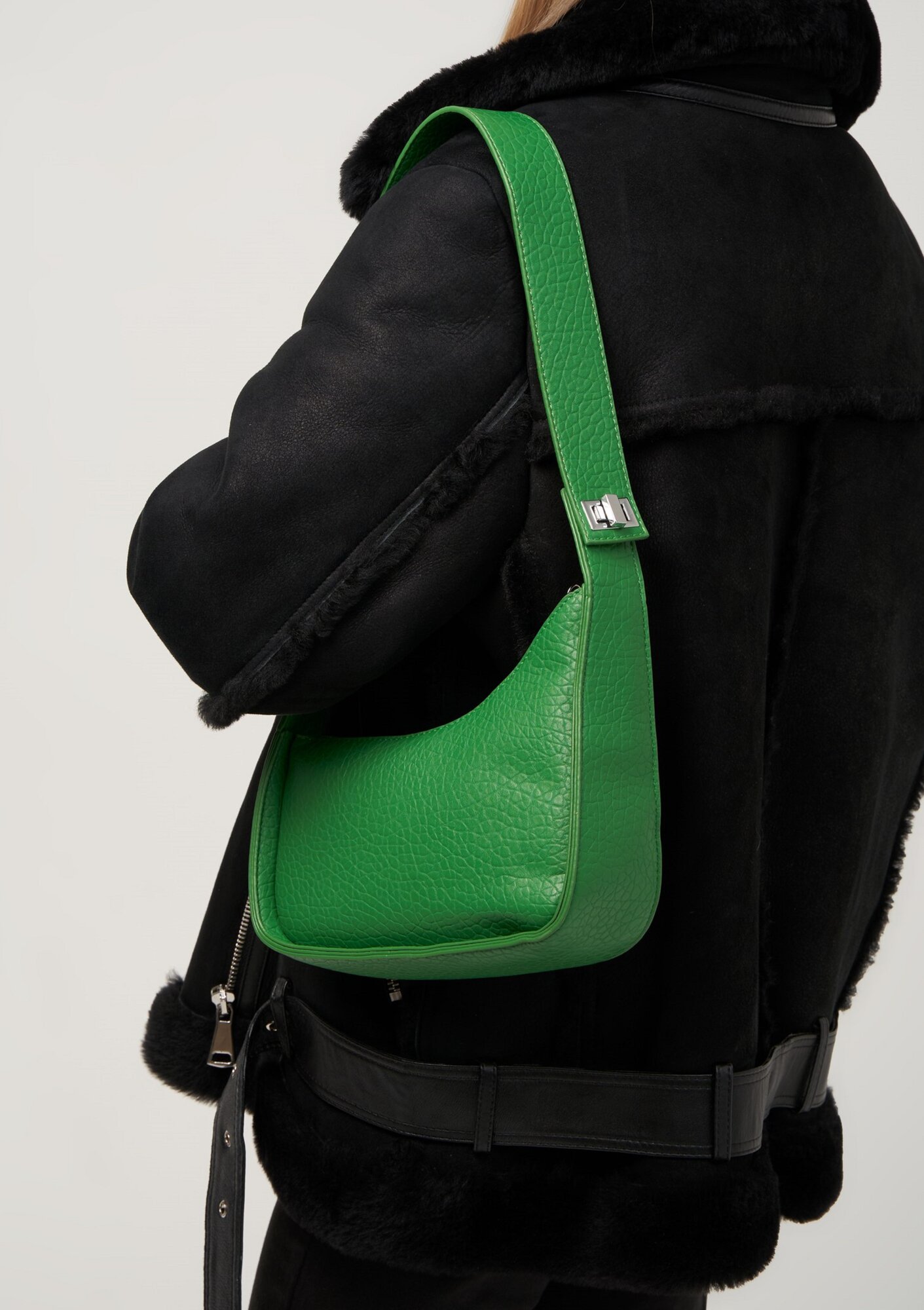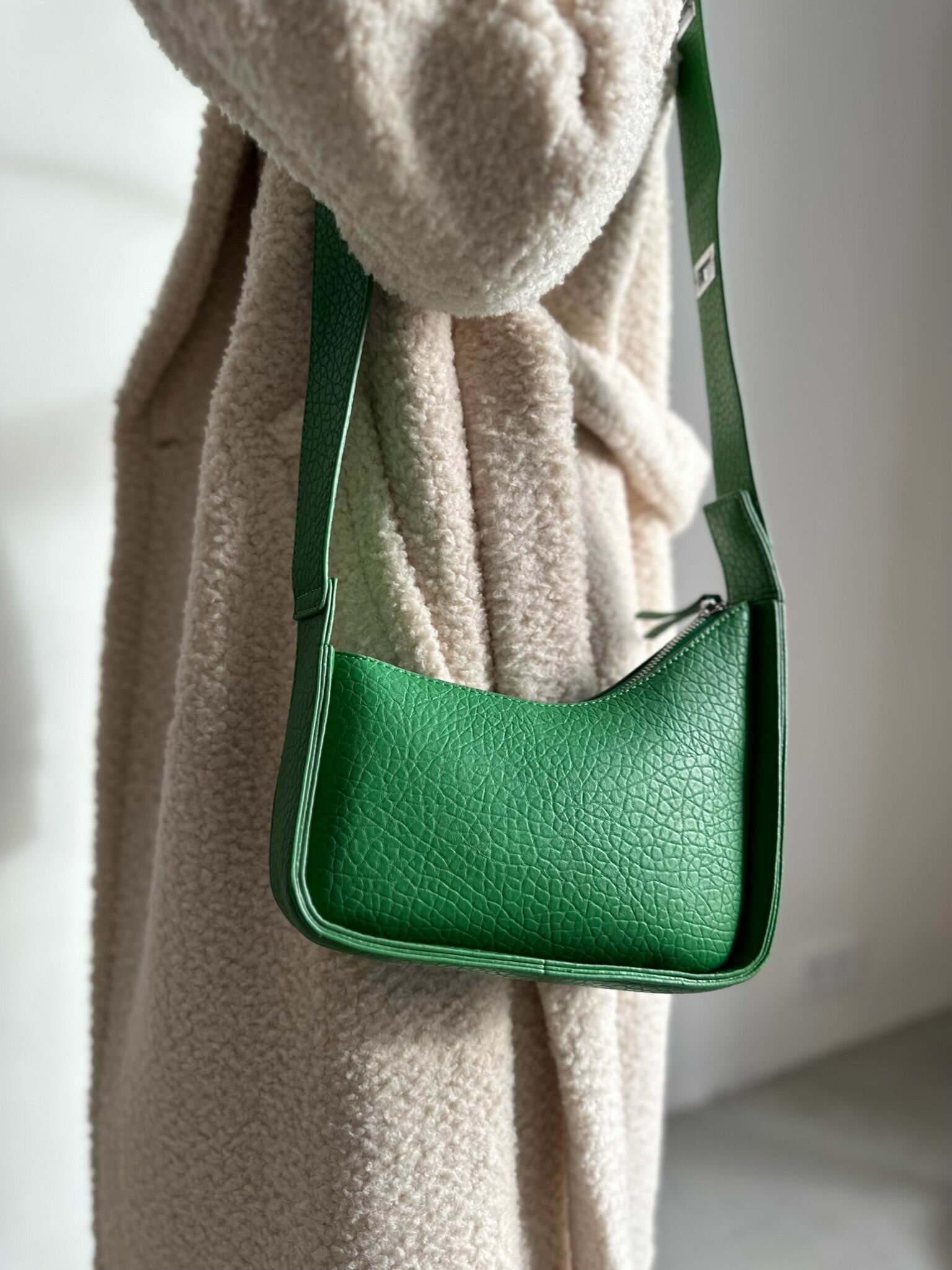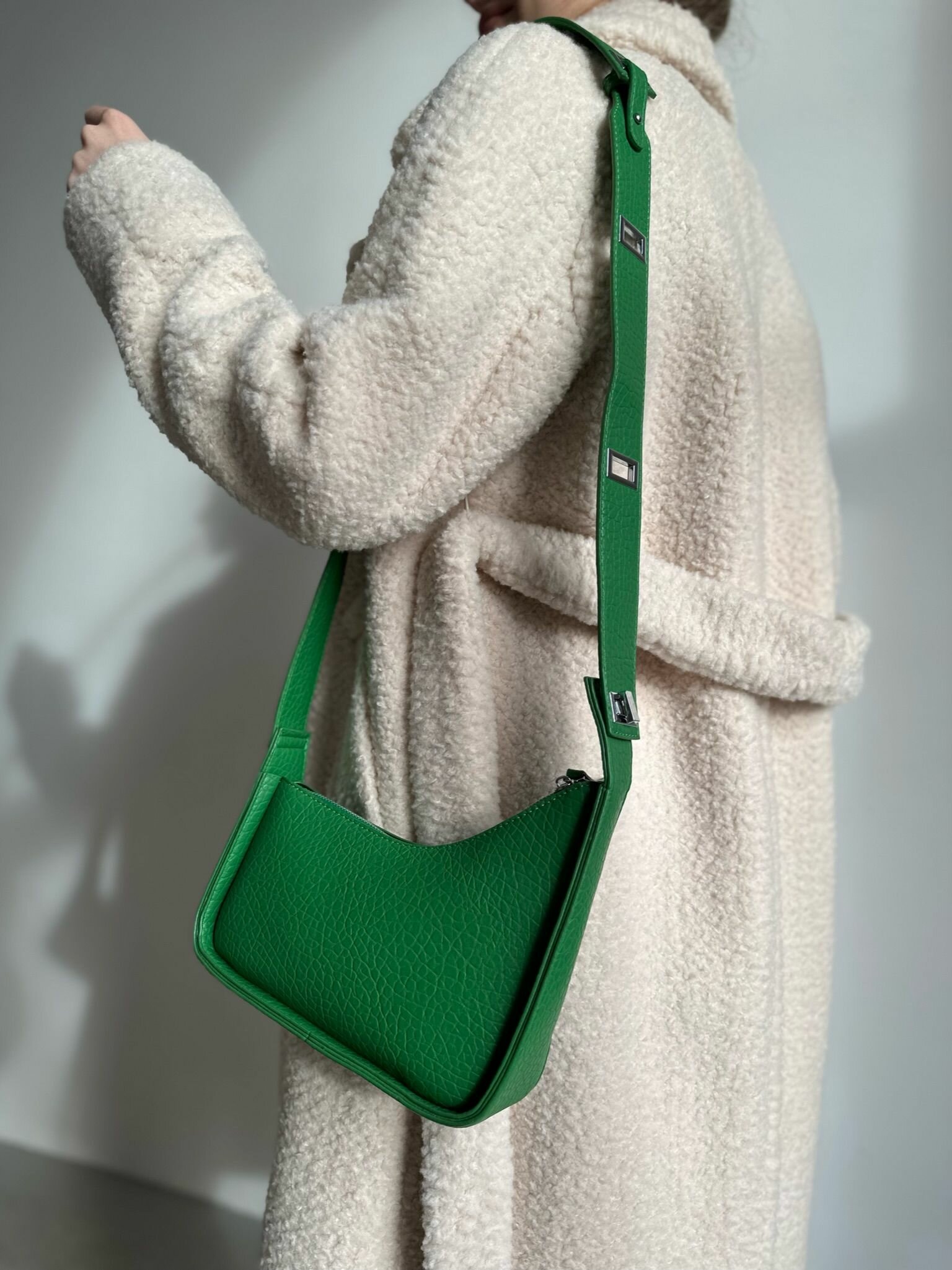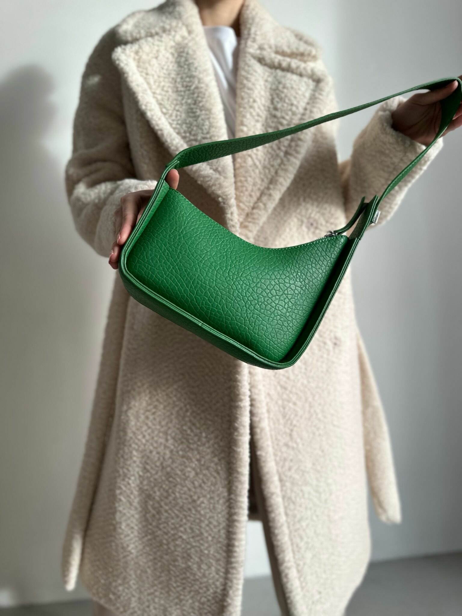 Сумка багет Vael, фактура зернистая, зелёный интересное: