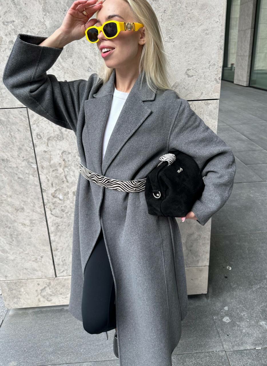 Сумка саквояж Shapely, фактура бархатистая, серая