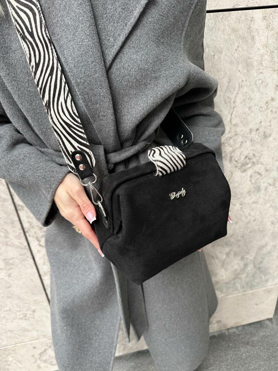 Сумка саквояж Shapely, фактура бархатистая, черный интересное: