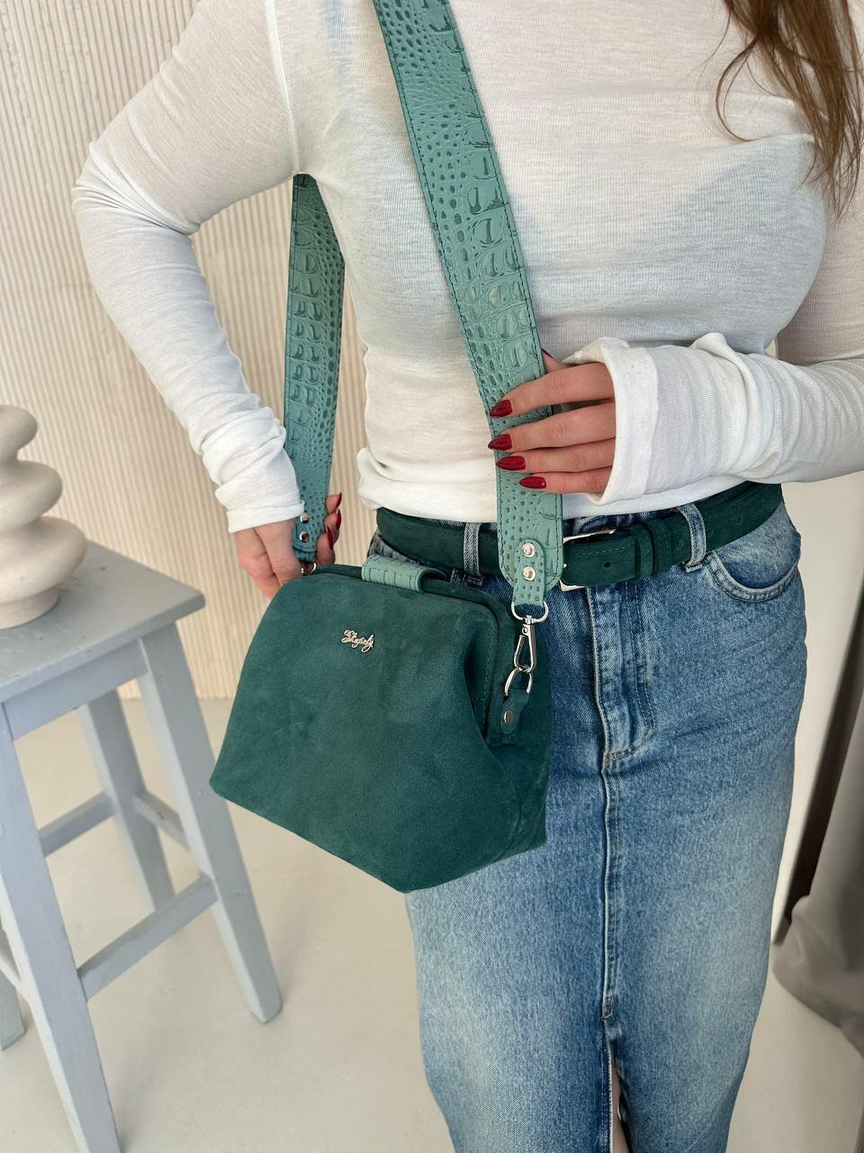 Сумка саквояж Shapely, фактура бархатистая, изумрудный интересное: