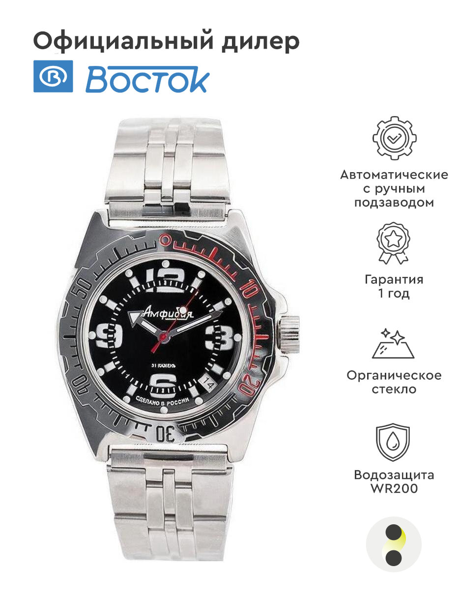 Наручные механические часы с автоподзаводом Восток Амфибия 110903 black red