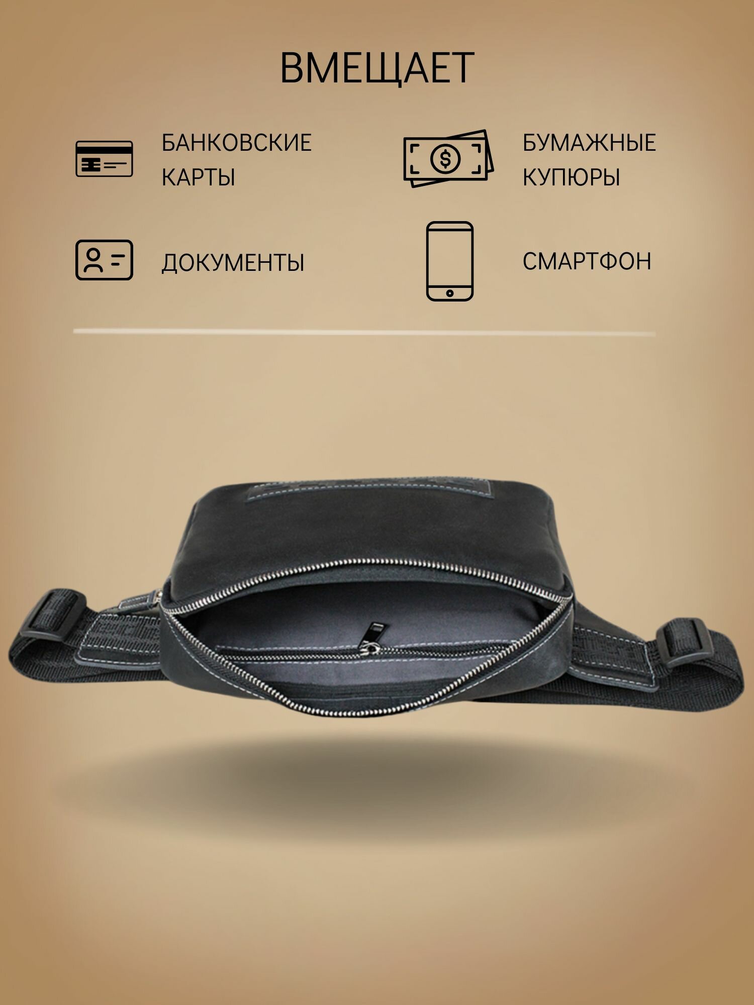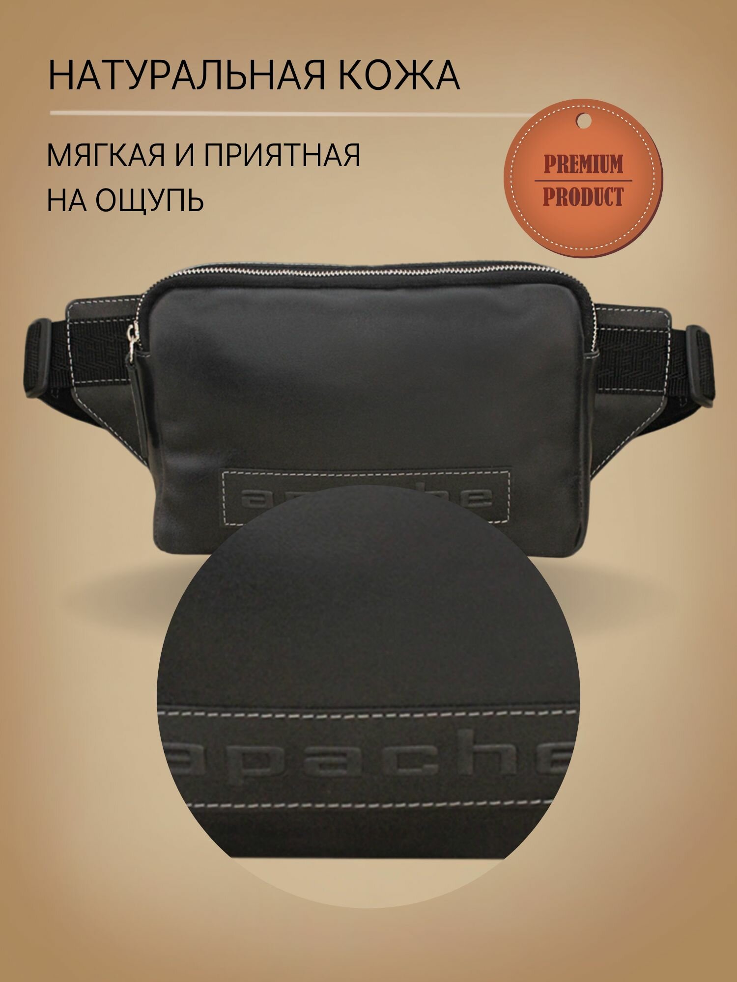 Сумка поясная Apache, фактура тиснение, дымчато-черный интересное: