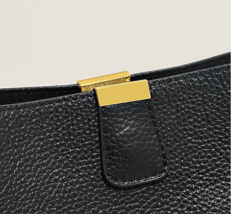 Сумка ведро KAIDIFEINIROO женская на плечо из натуральной кожи с ремешком черная, фактура гладкая, черная