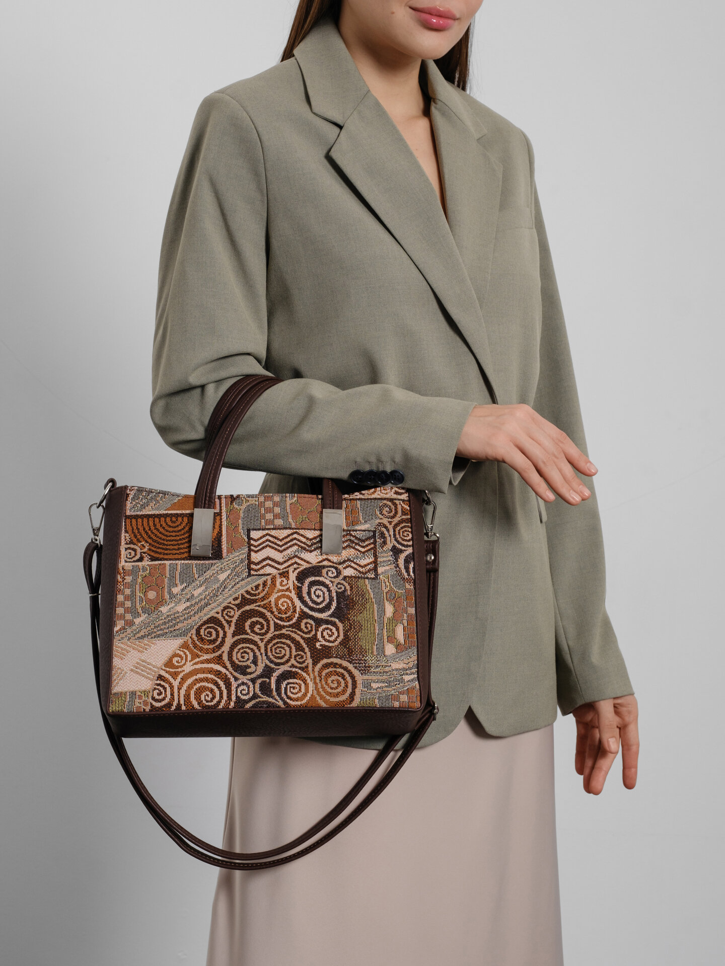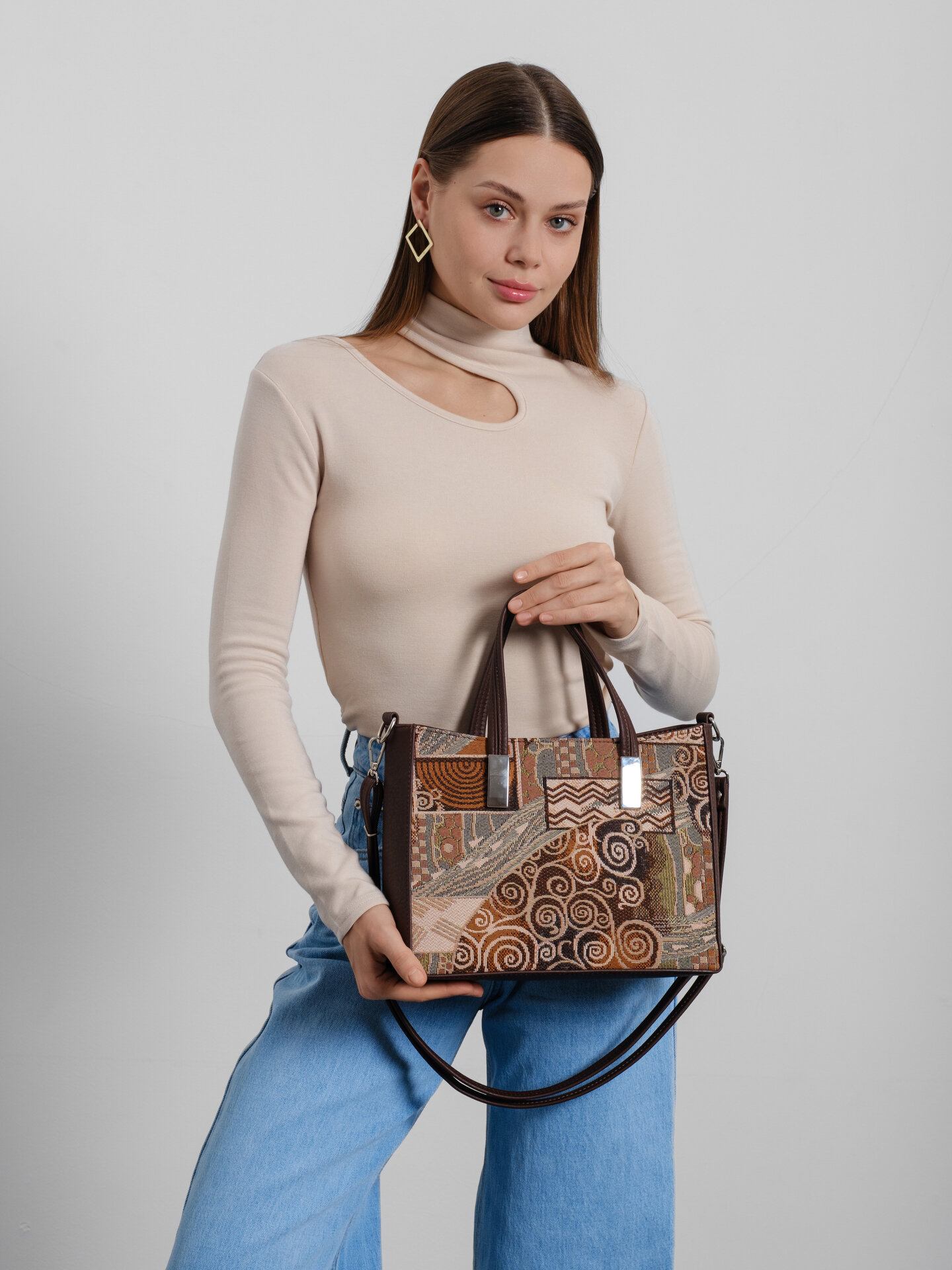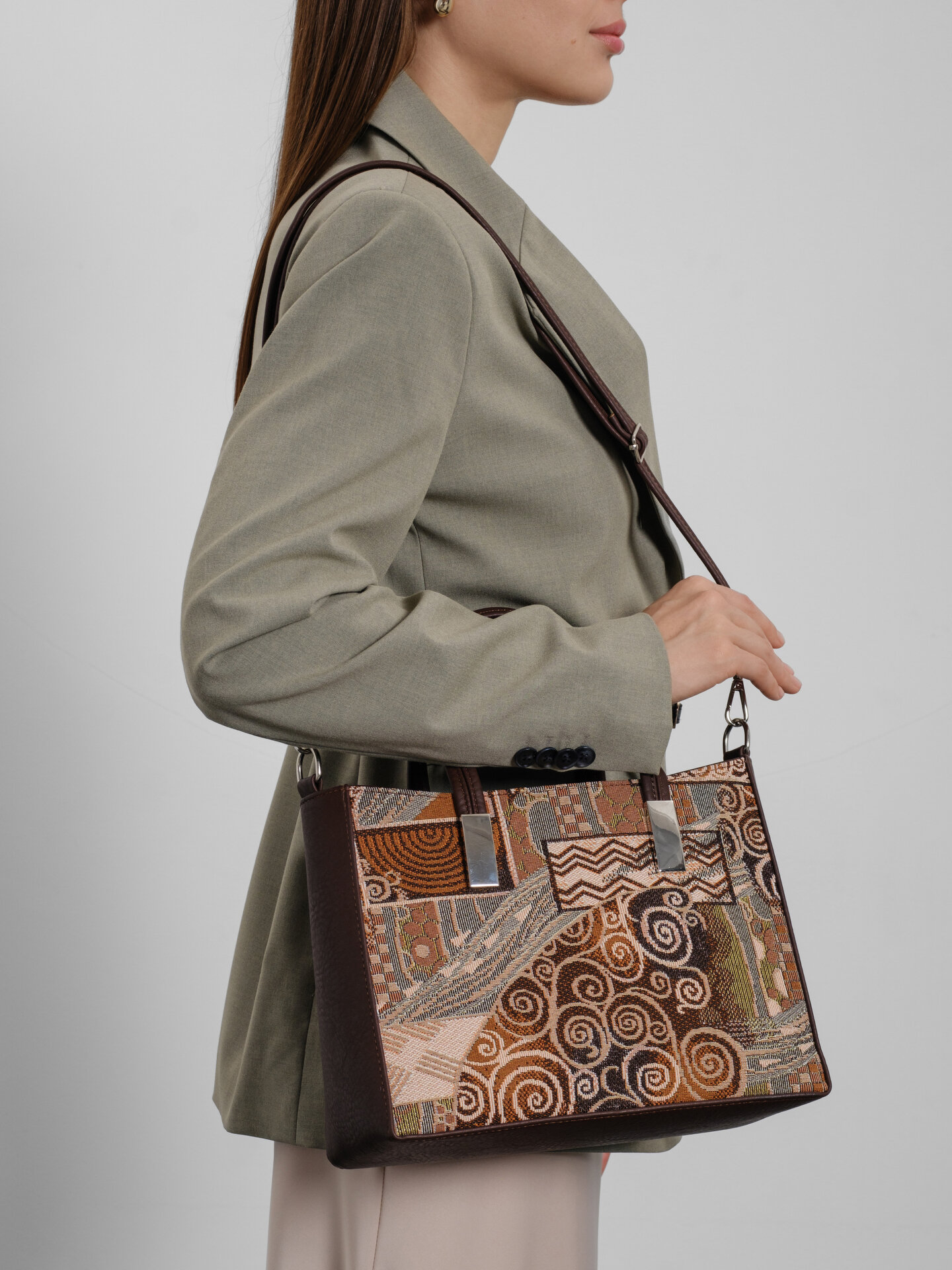 Сумка тоут L-CRAFT, фактура матовая, бежевый, коричневый, оранжевый, зеленый, серый интересное: