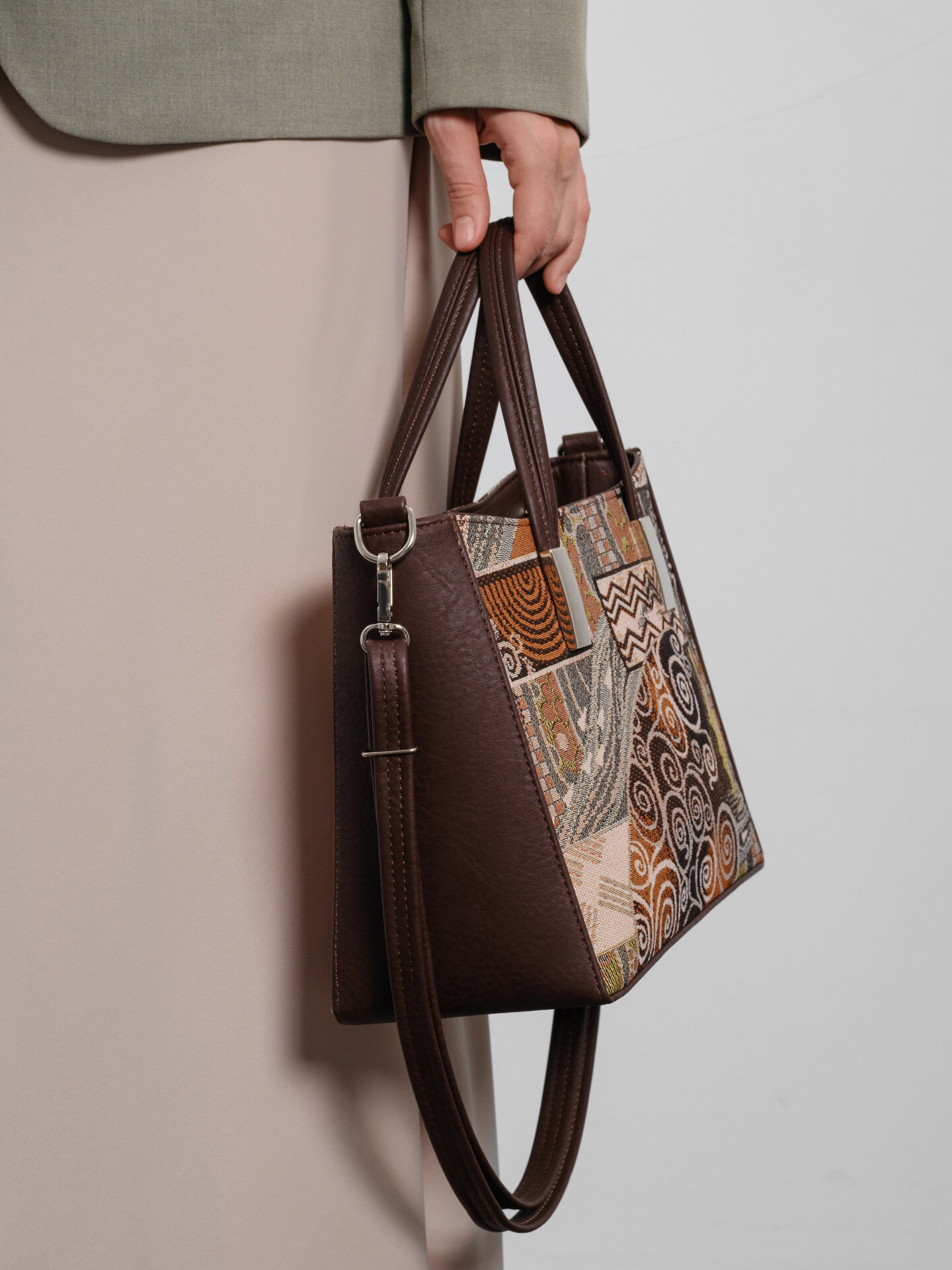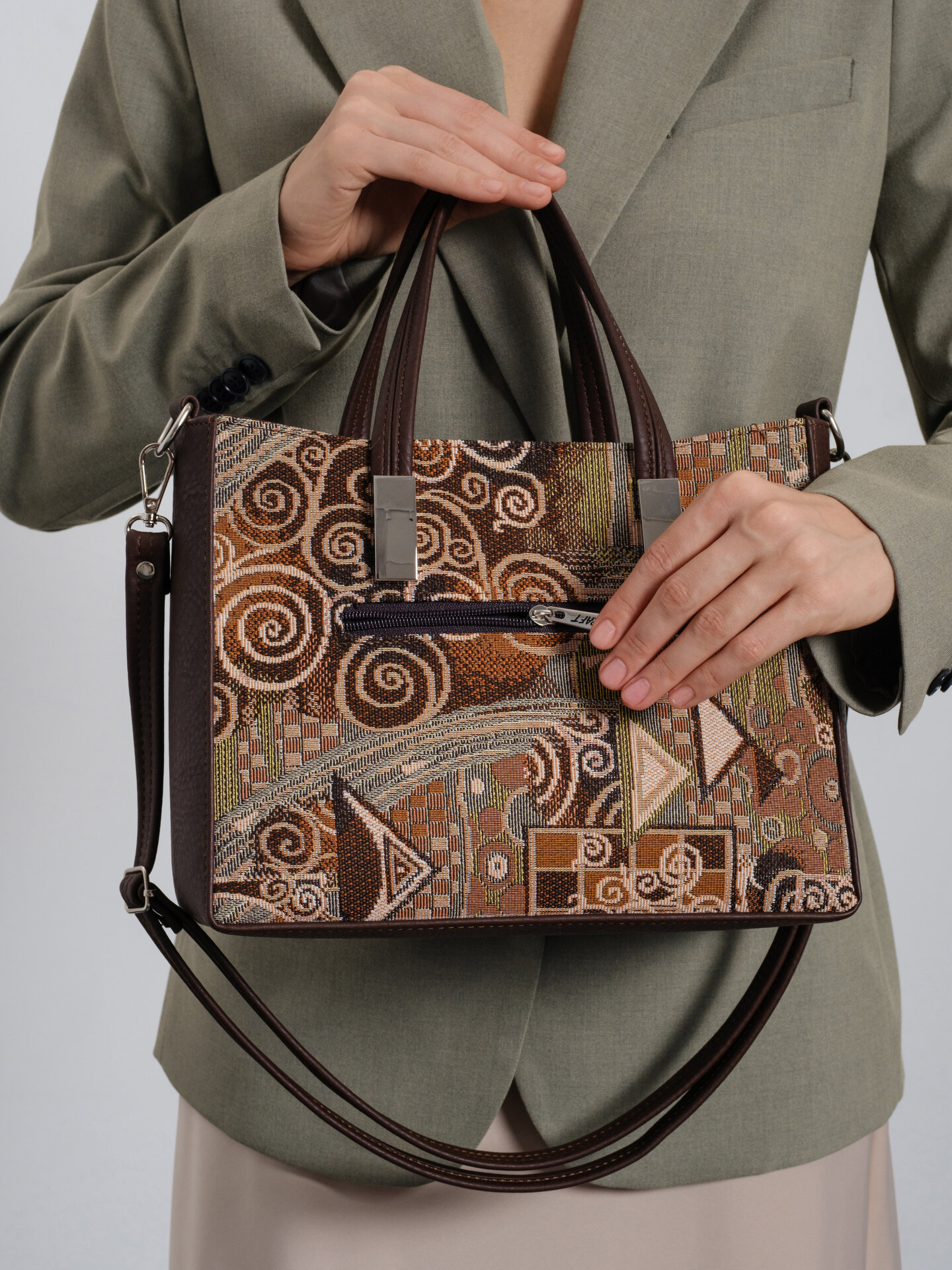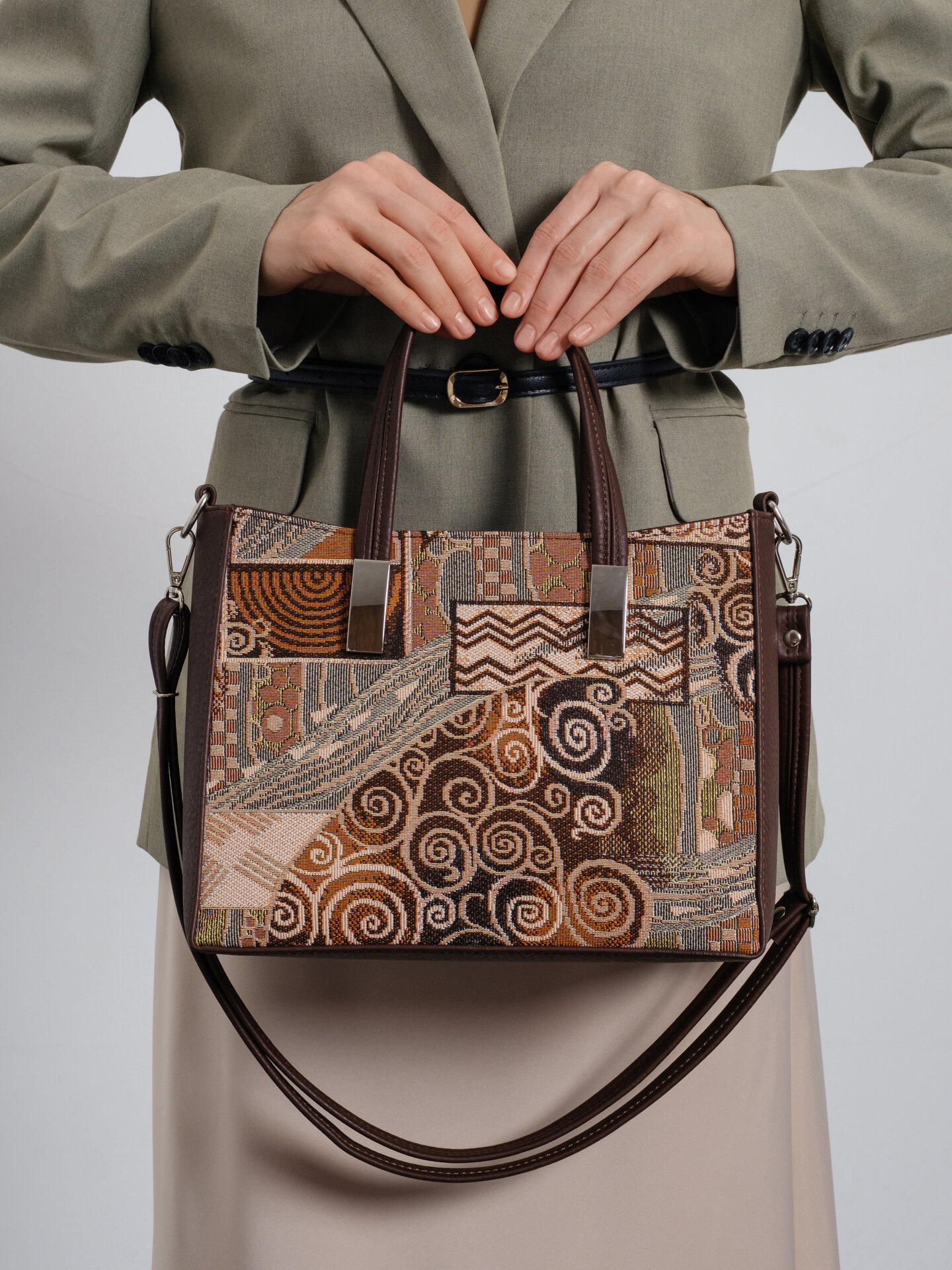 Сумка тоут L-CRAFT, фактура матовая, бежевый, коричневый, оранжевый, зеленый, серый интересное: