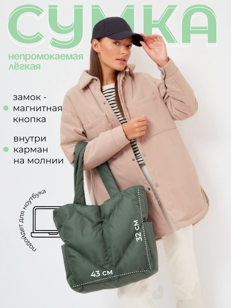 Сумка шоппер cattacode store, фактура стеганая, зелёный интересное:
