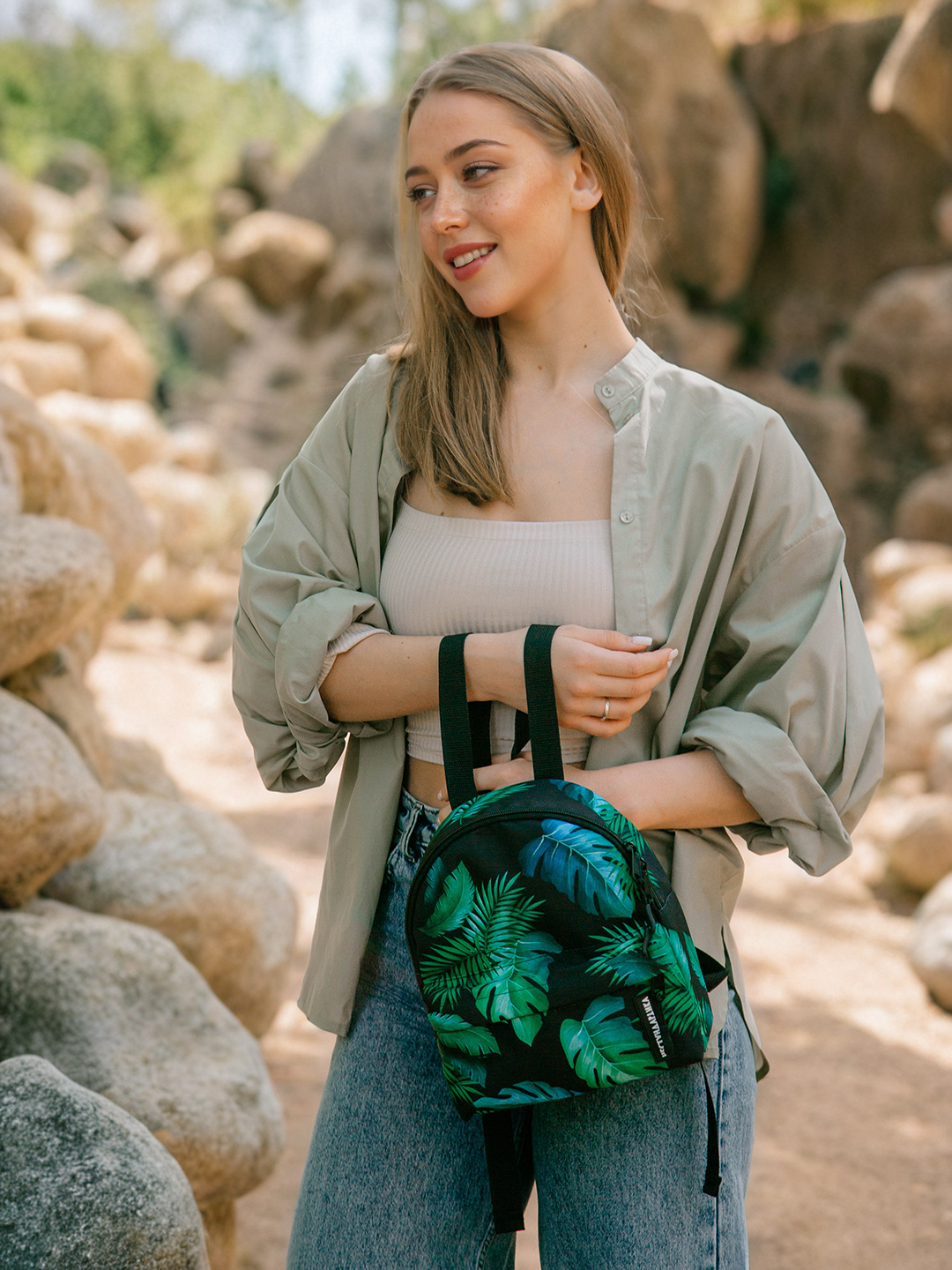 Купить Рюкзак НЕСТАНДАРТИКА, фактура гладкая, Тропические листья