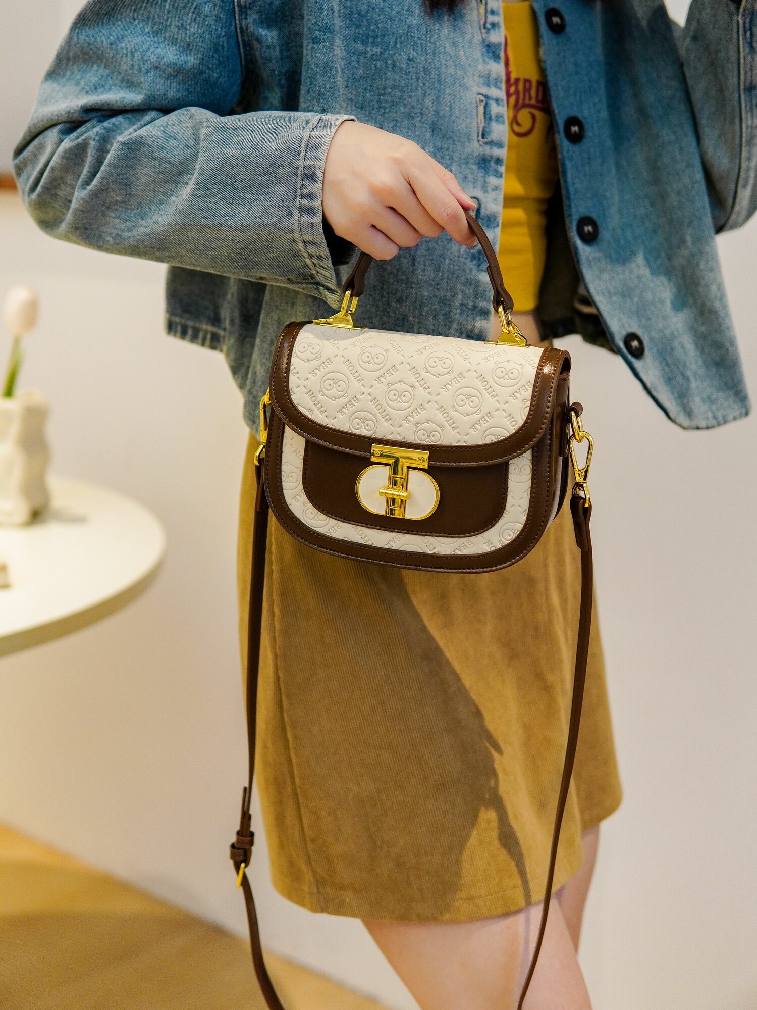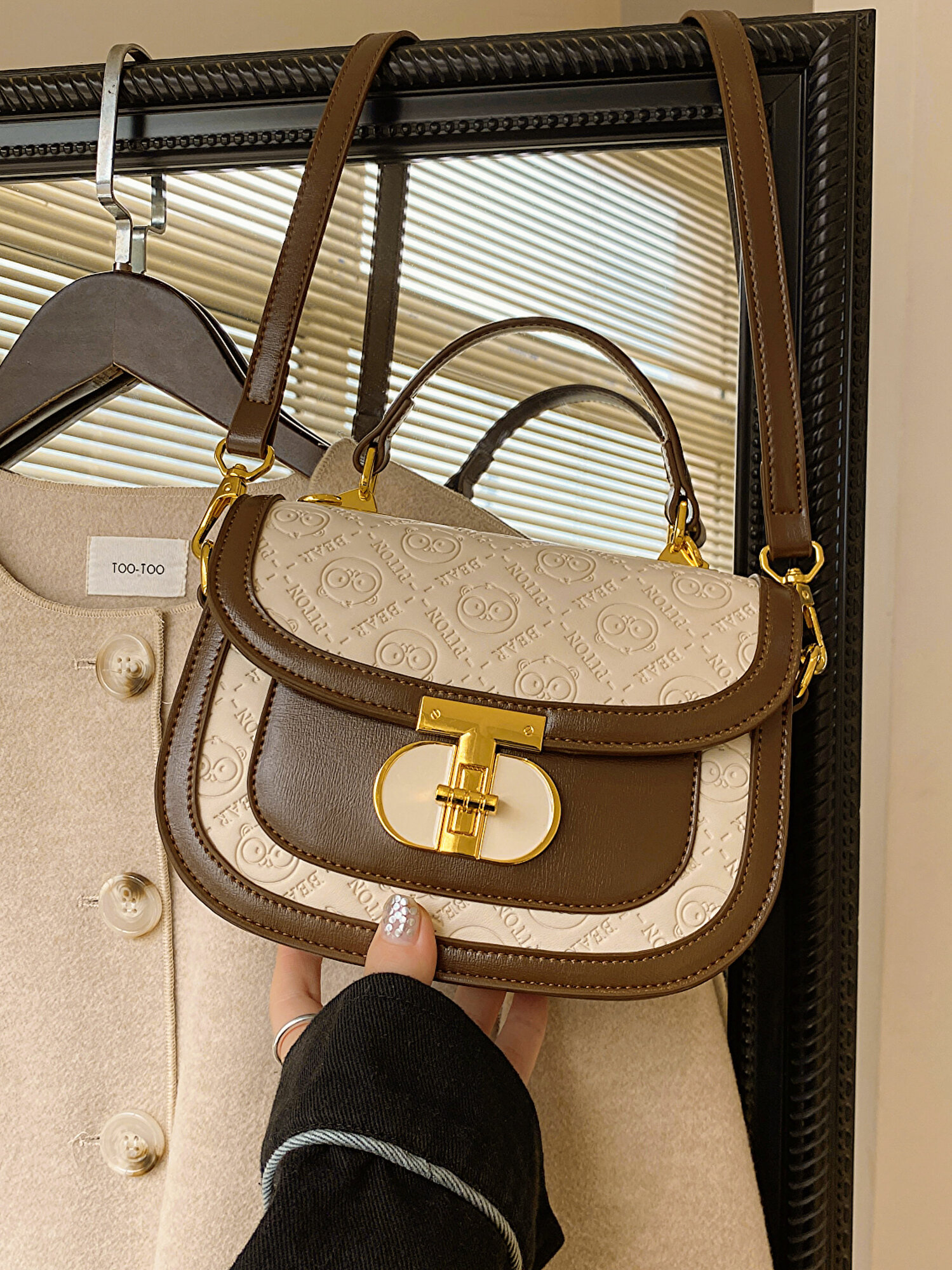 Сумка кросс-боди BeiBaoBao, фактура рельефная, матовая, молочная интересное: