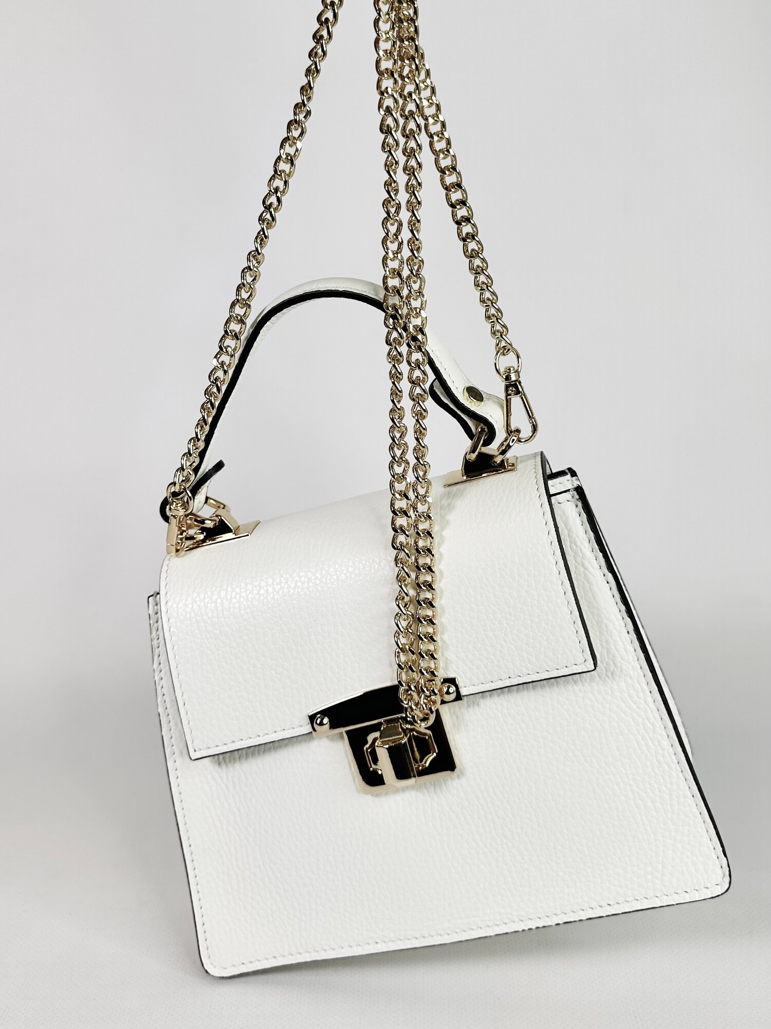 Сумка сэтчел Vera Pelle Borsa Petto, фактура зернистая, белый интересное: