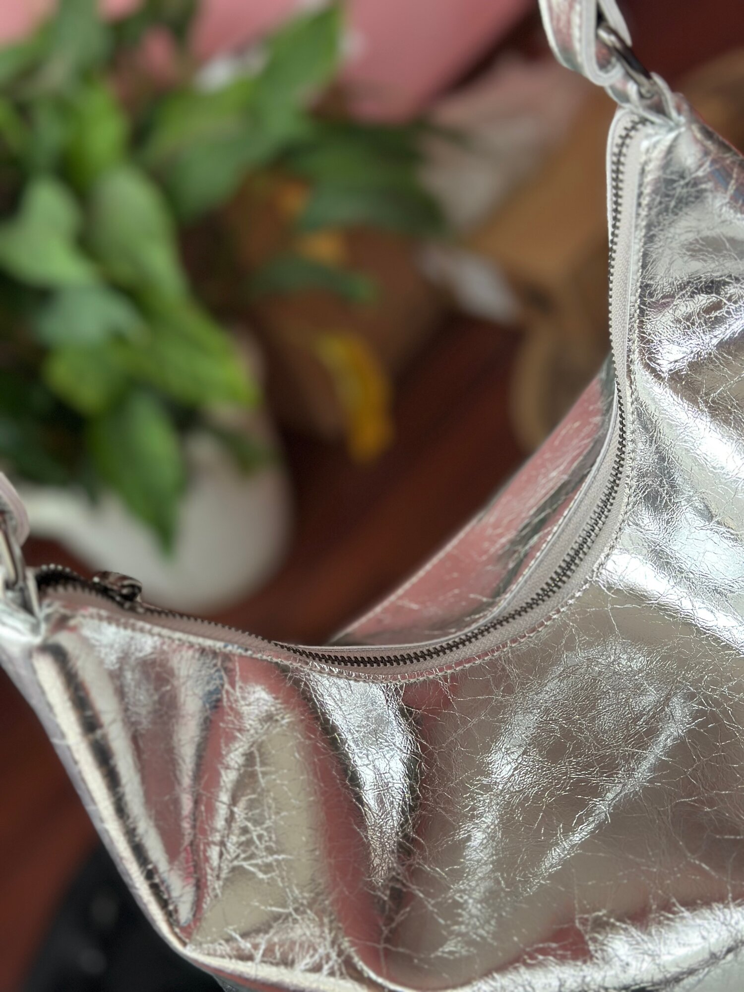 Купить Сумка ведро LAK, фактура бархатистая, серебряный