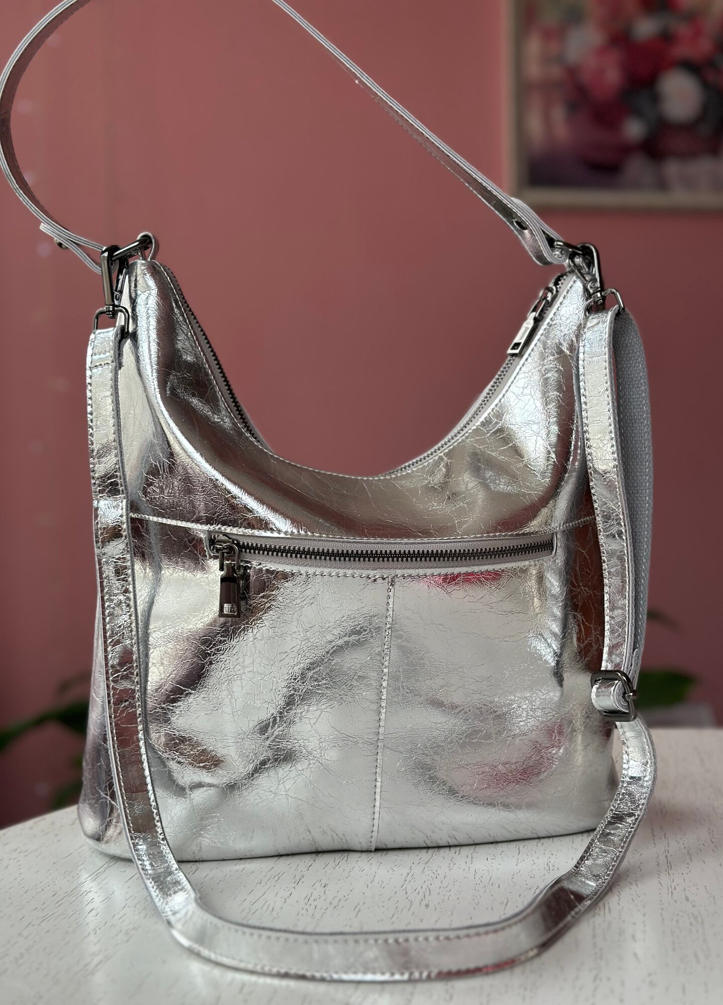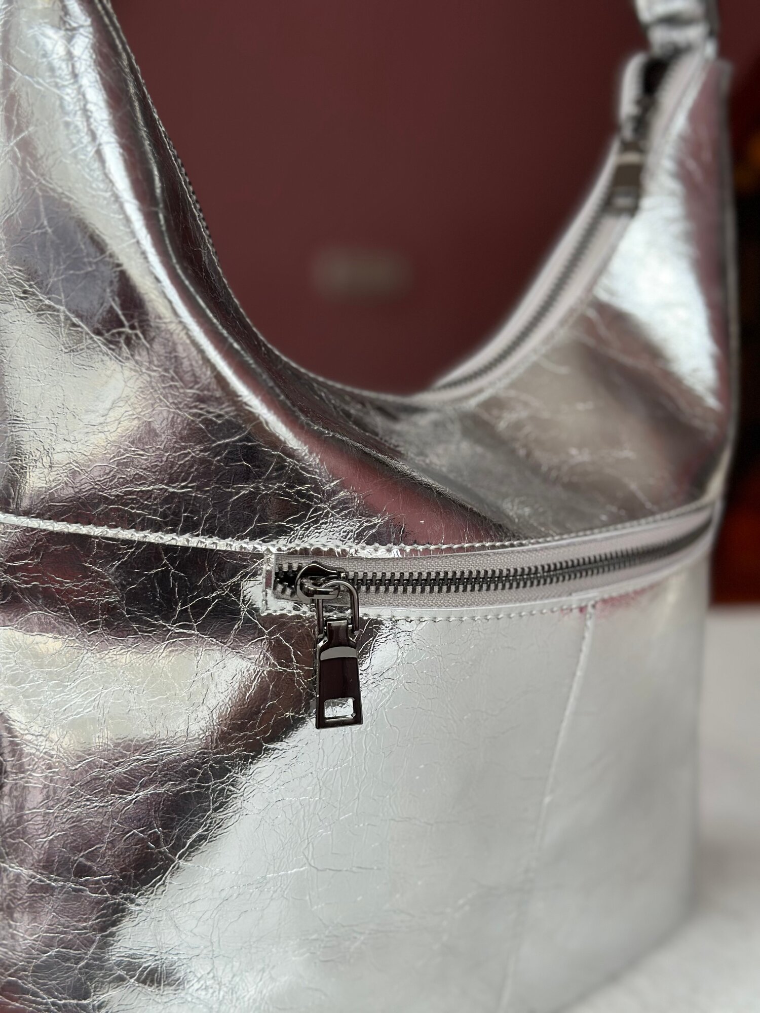 Сумка ведро LAK, фактура бархатистая, серебряный интересное: