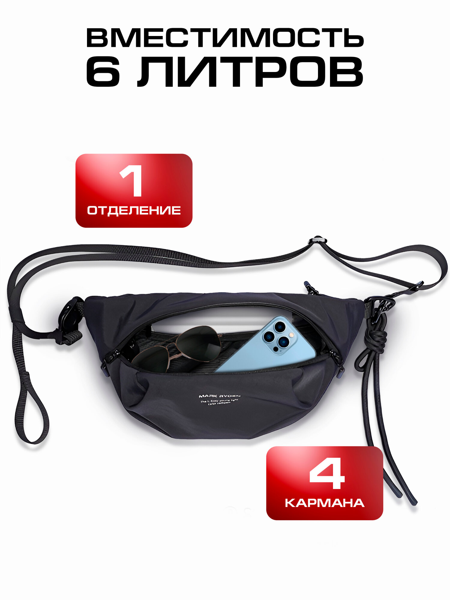 Сумка поясная Mark Ryden, фактура матовая, гладкая, черный