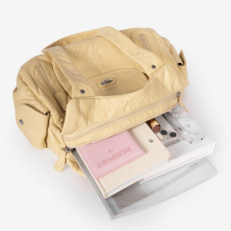 Сумка торба RUNYI, фактура гладкая, бежевый