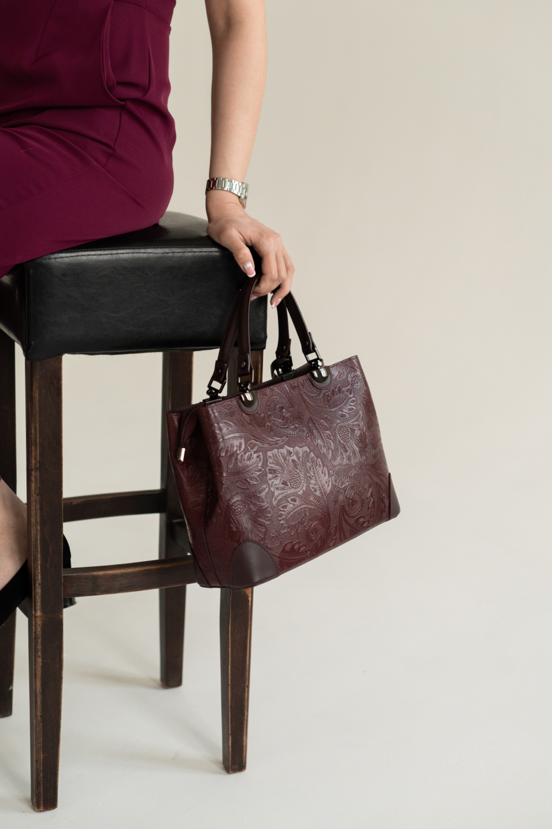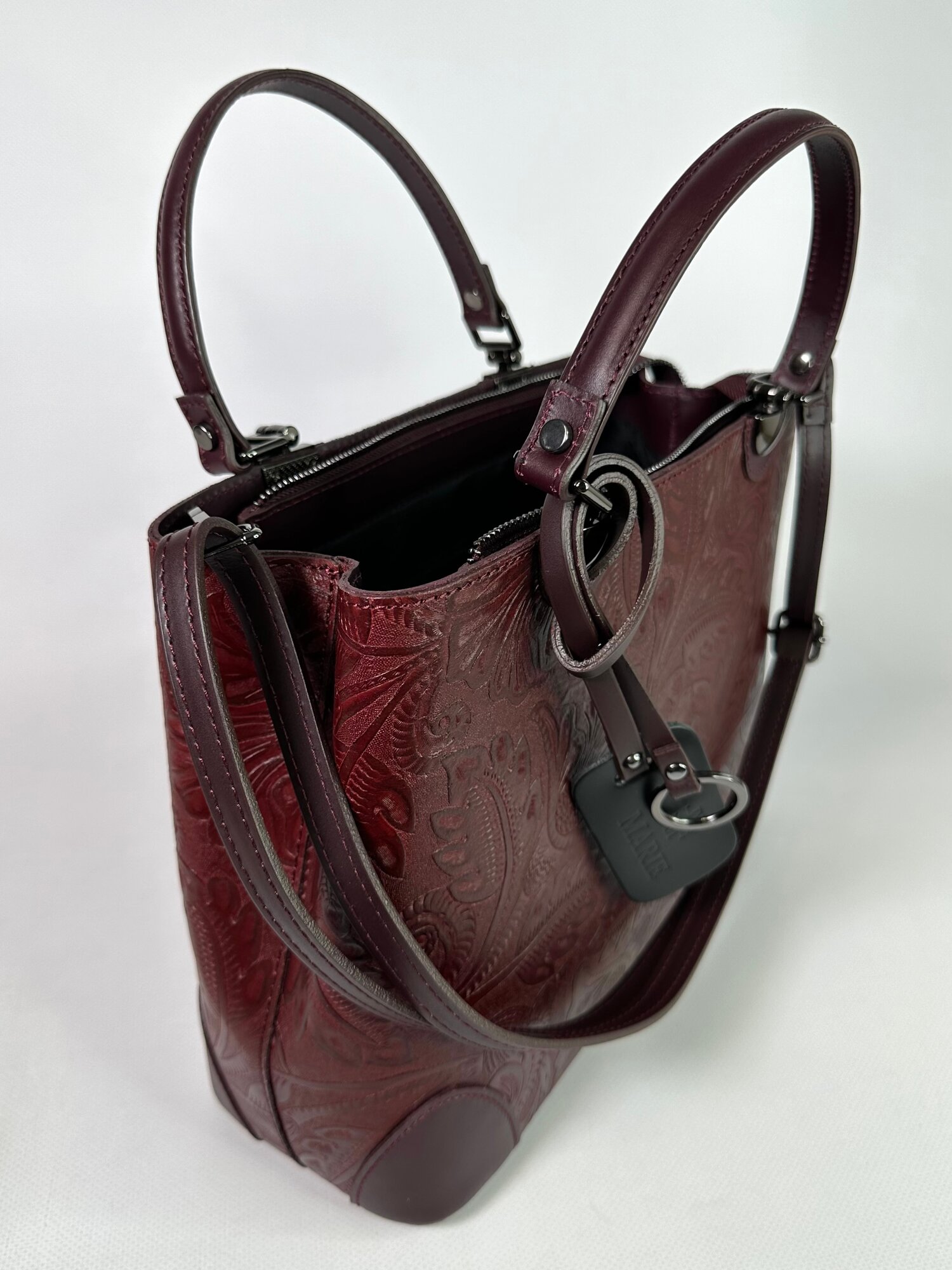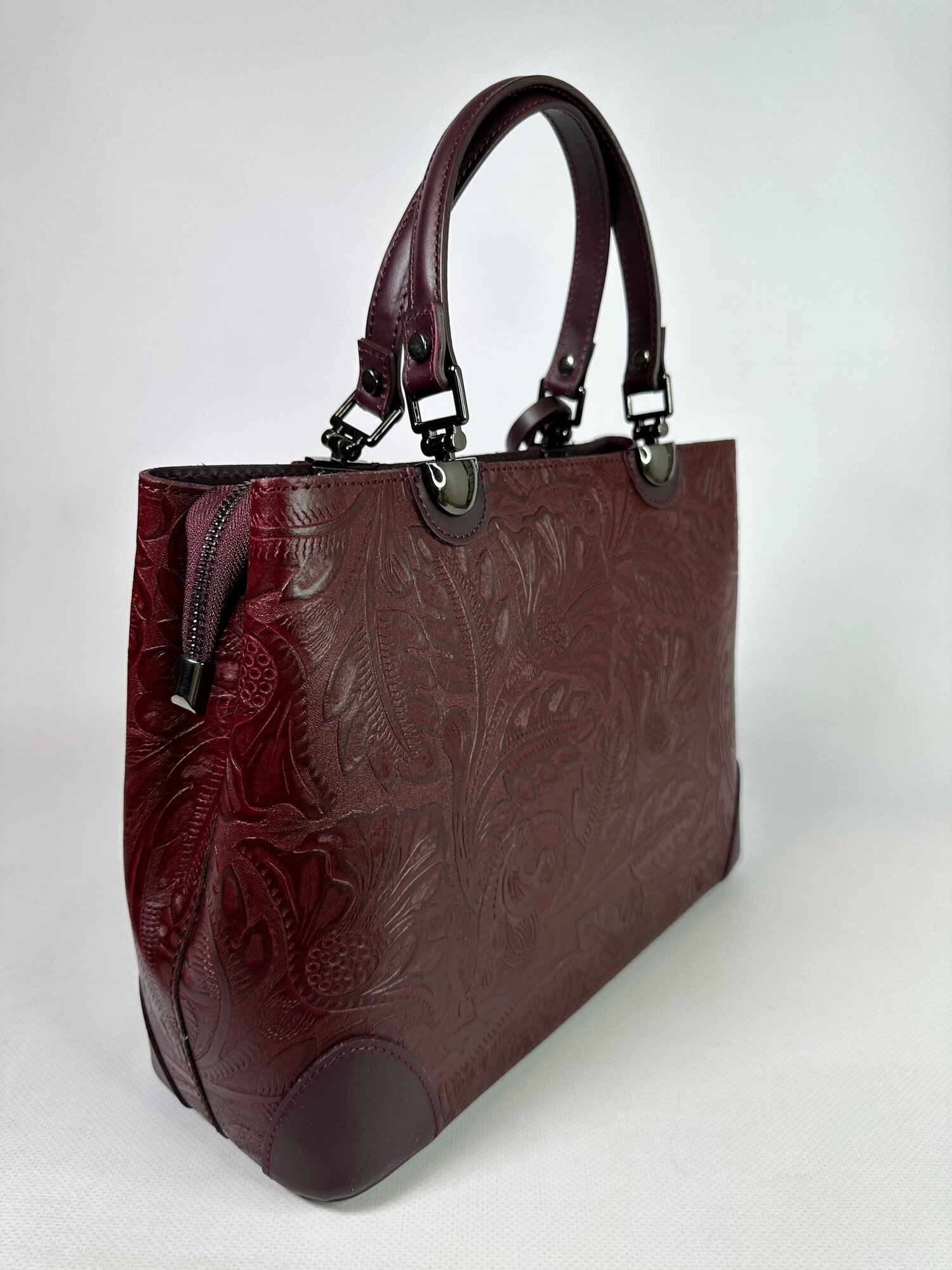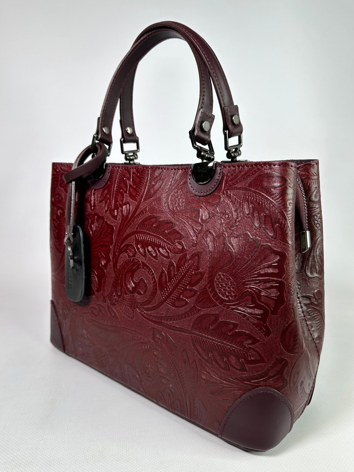 Сумка тоут Vera Pelle Modello chic, фактура матовая, рельефная, бордо интересное: