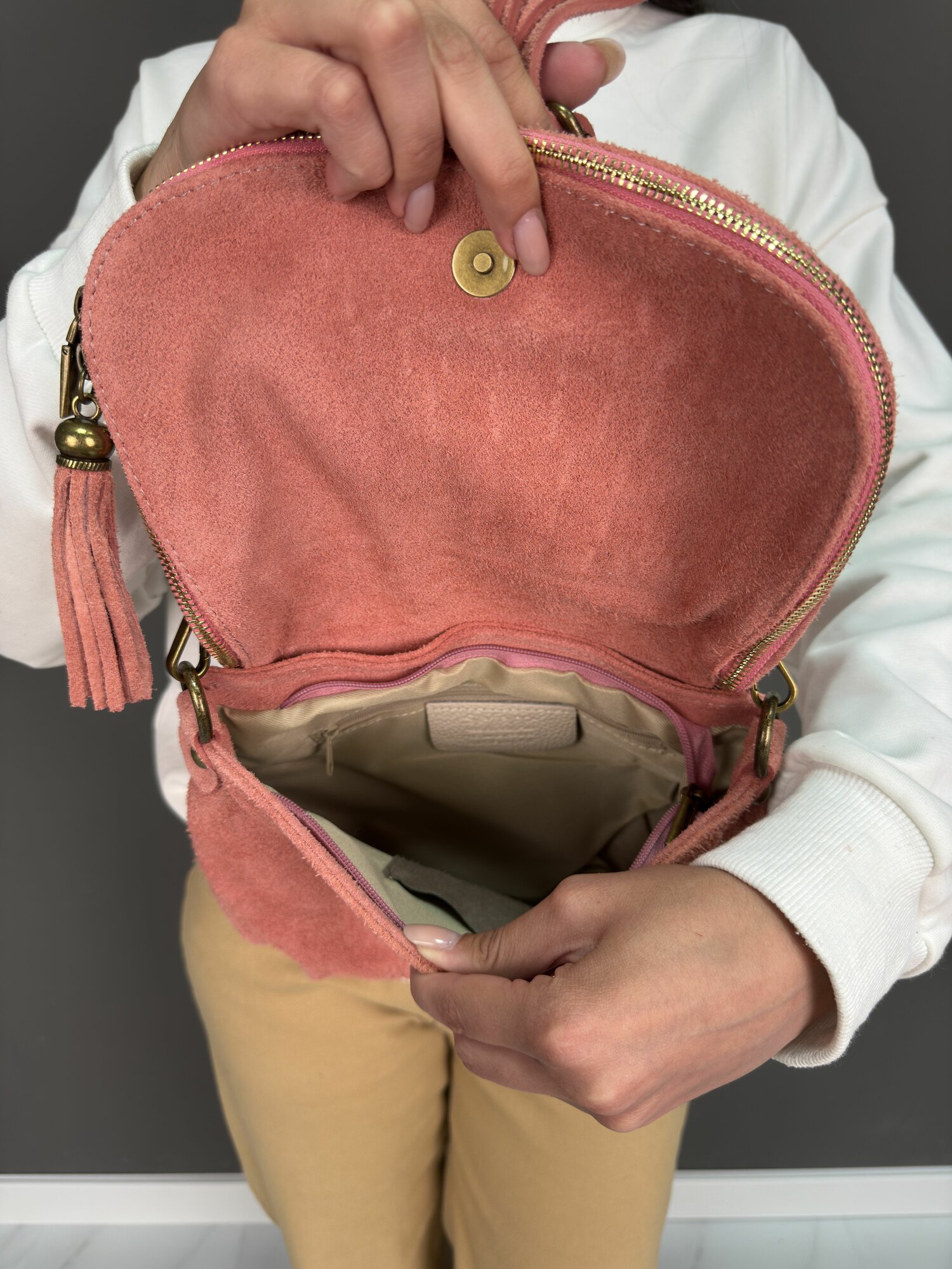 Сумка кросс-боди Sefaro, фактура под рептилию, пыльная роза
