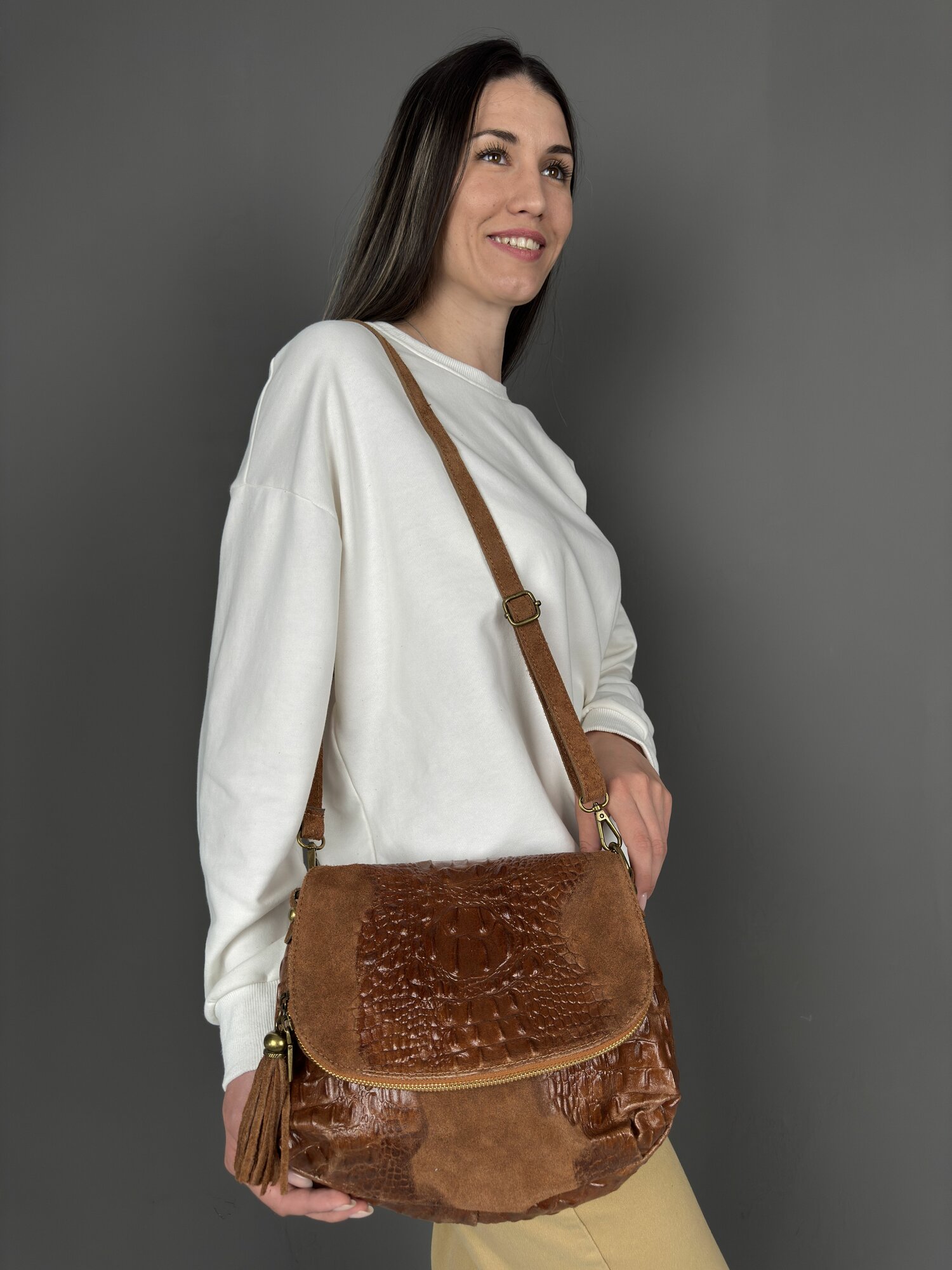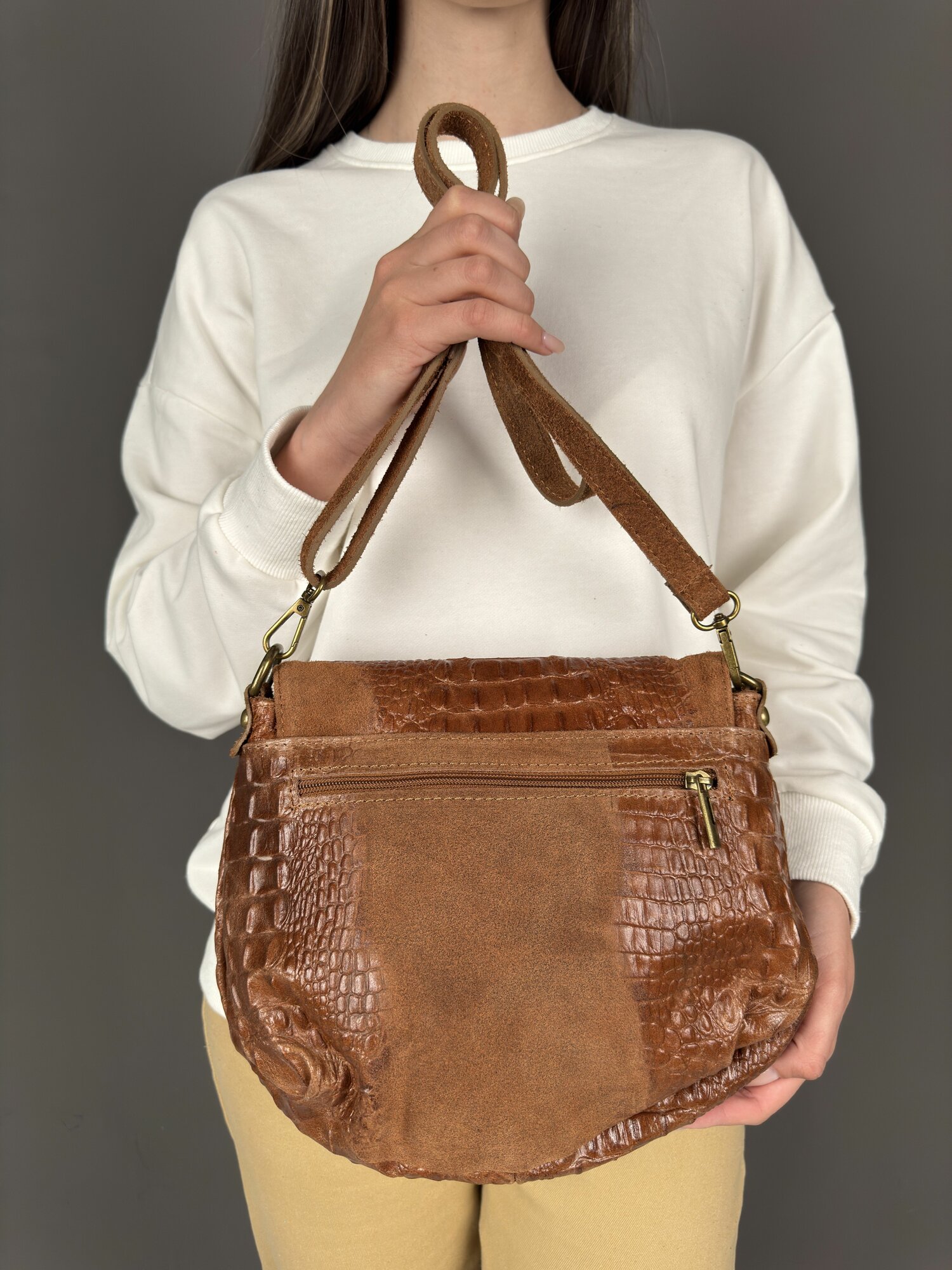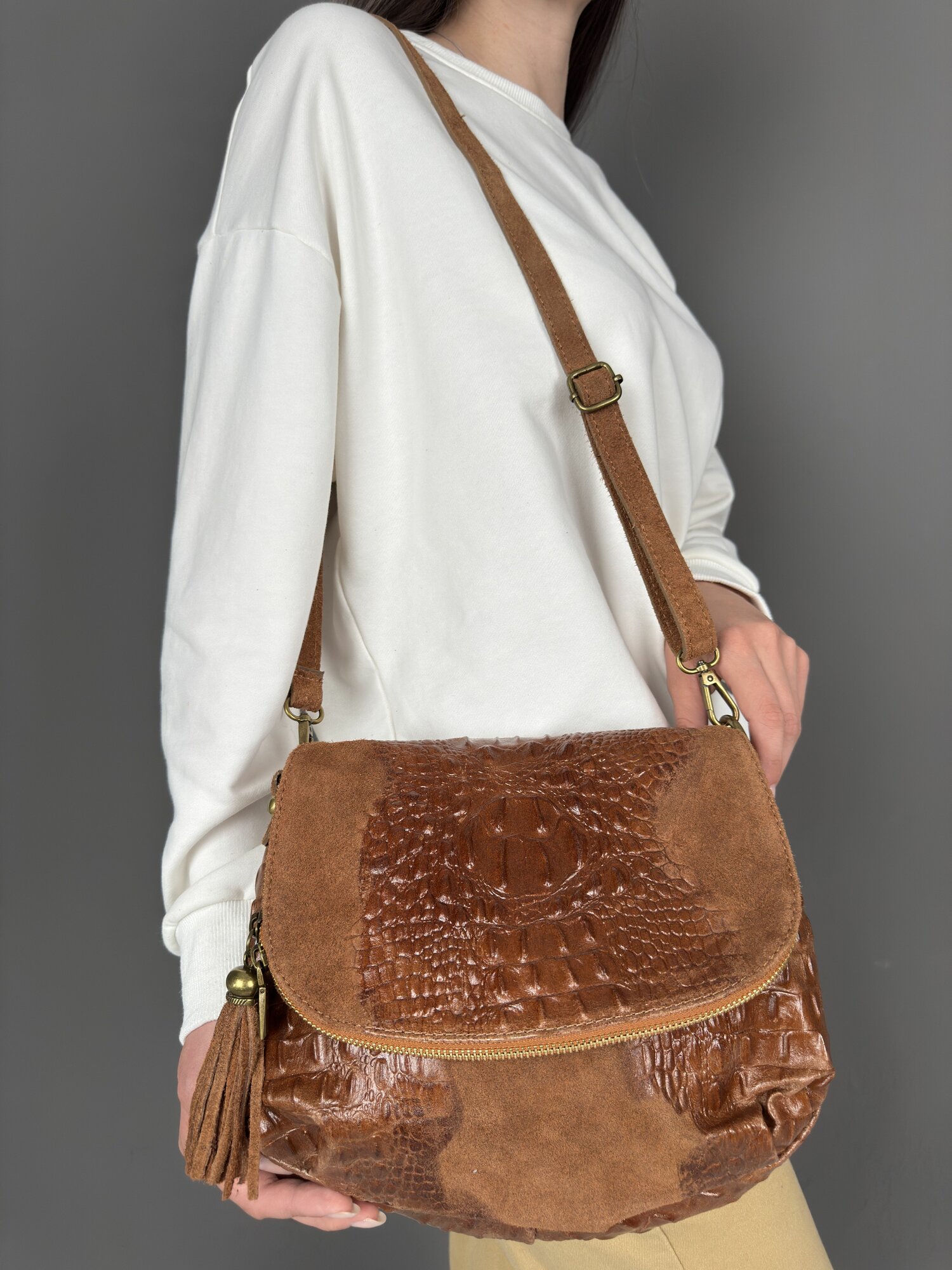 Купить Сумка кросс-боди Sefaro, фактура под рептилию, коричневый