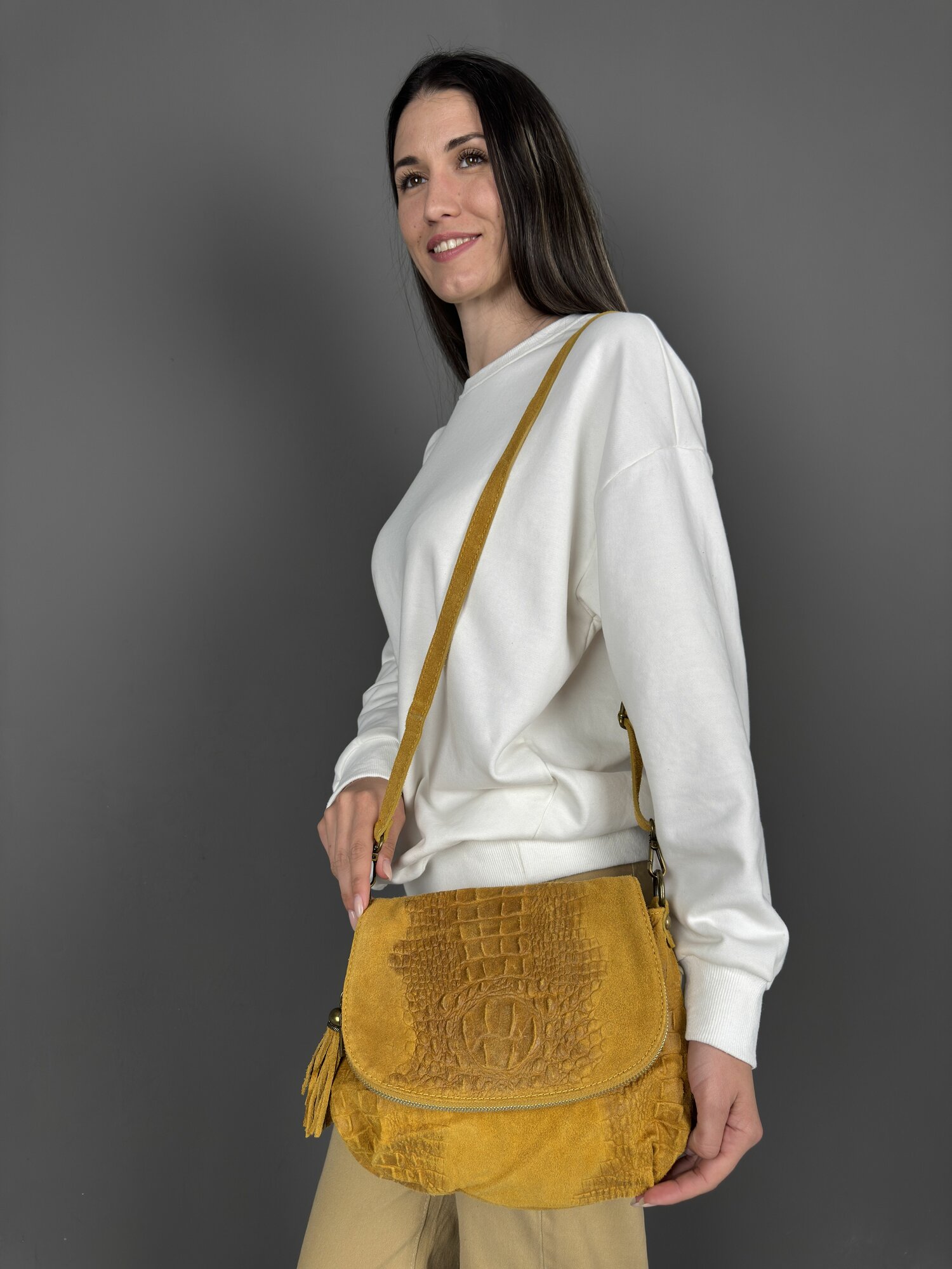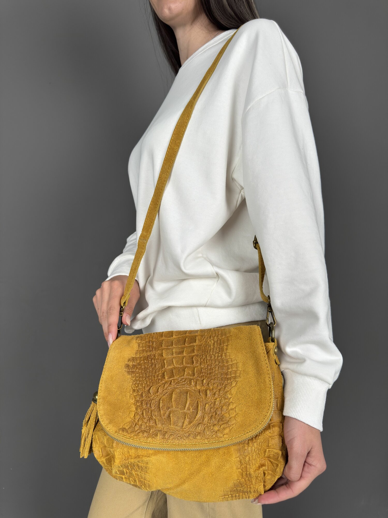 Купить Сумка кросс-боди Sefaro, фактура под рептилию, горчичный