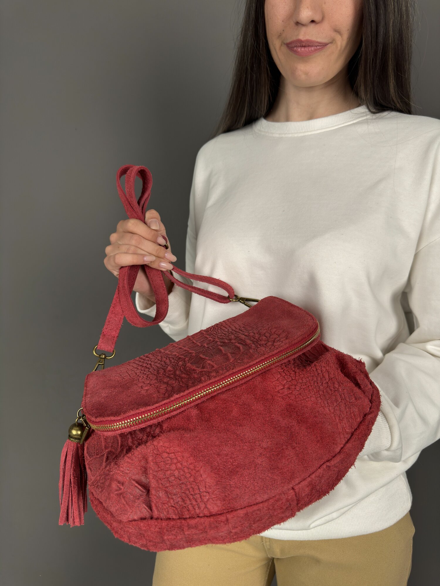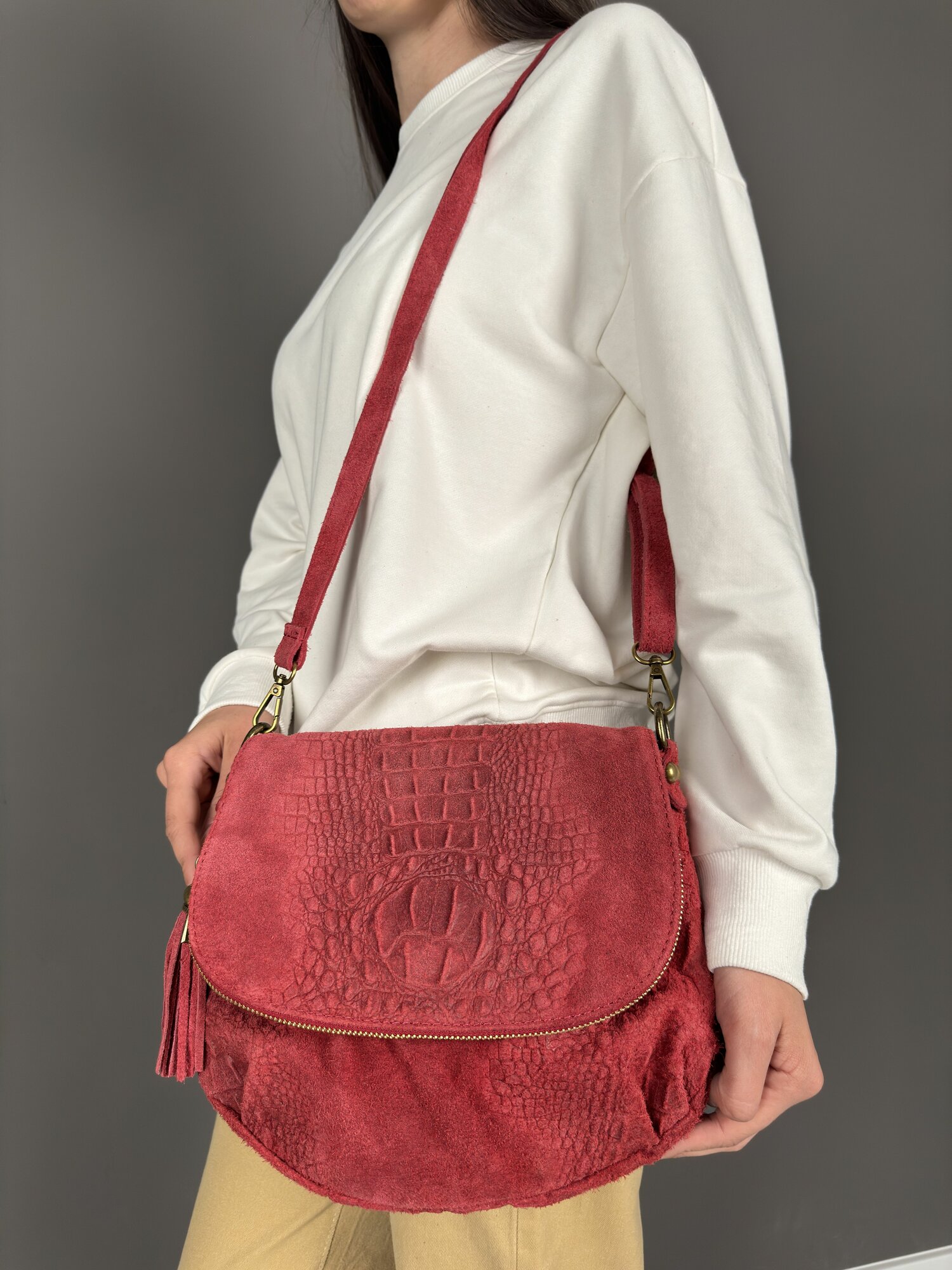 Сумка кросс-боди Sefaro, фактура под рептилию, фуксия
