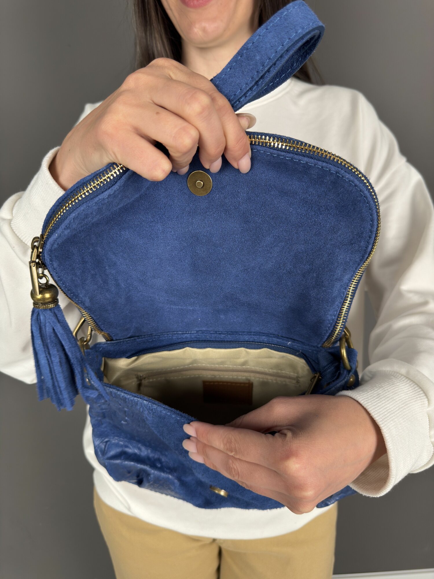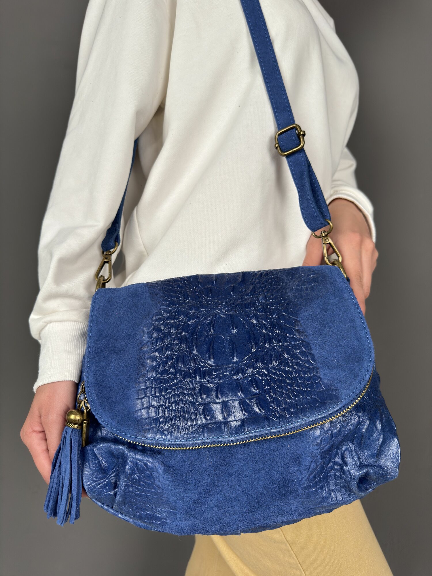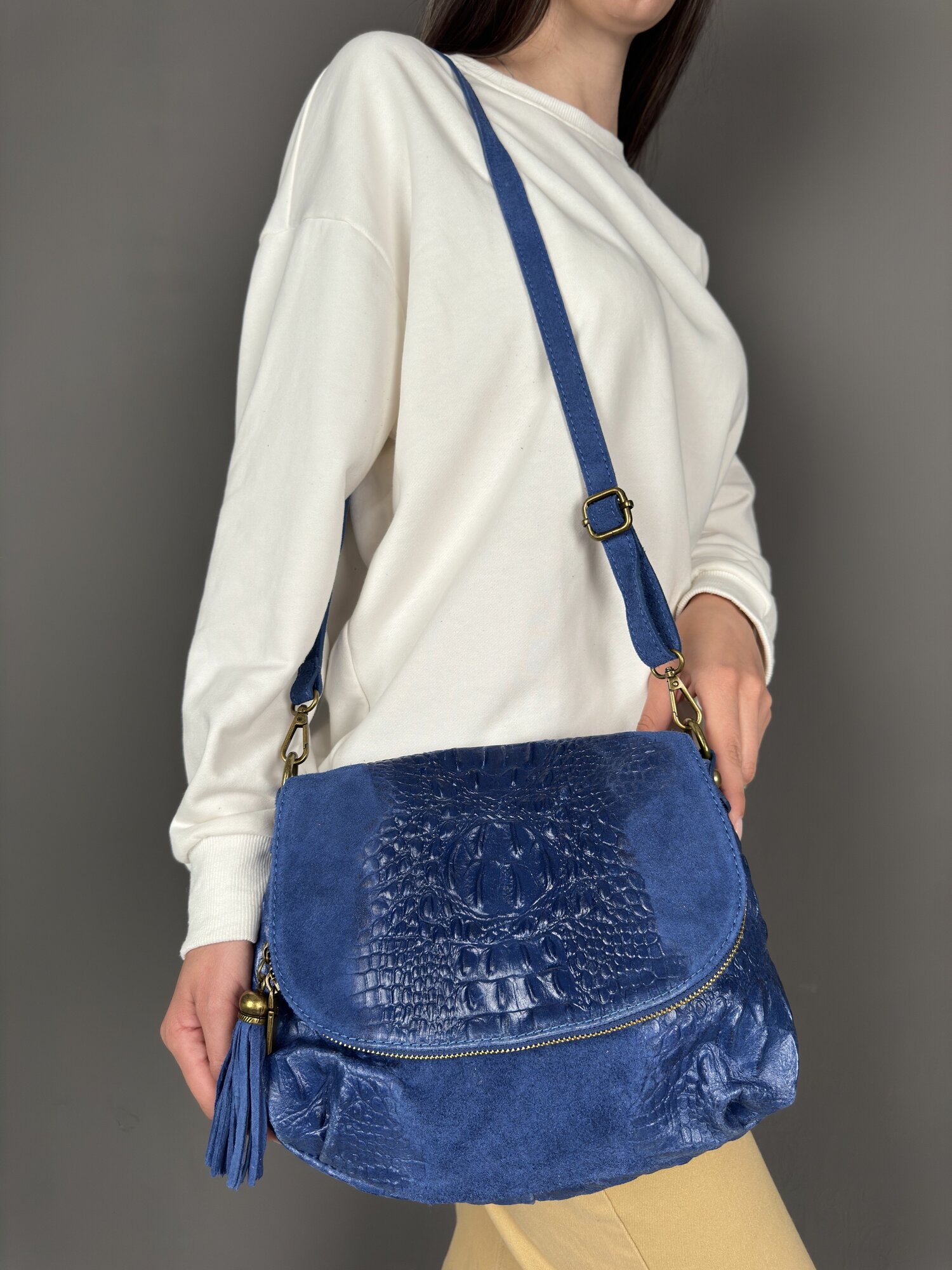 Сумка кросс-боди Sefaro, фактура под рептилию, Blu Scuro Caimano