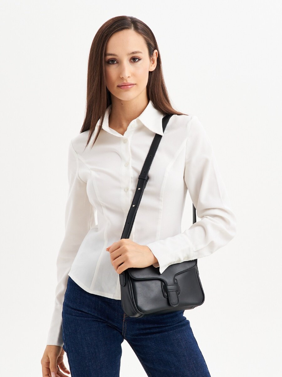 Купить Сумка багет Jane's Story, фактура гладкая, черный